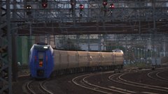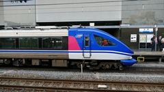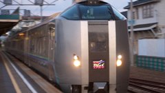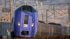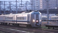 | 特急 スーパー北斗 (キハ281系) 1994年から営業運転を開始。札幌-函館で1日7往復・約3時間10分で運転されている。183系「北斗」より20分ほど速い。 JR北海道が開発した特急形振子式気動車で、日本国内の在来線気動車において、最高速度 130 km/h での営業運転を初めて行った系列である。 |