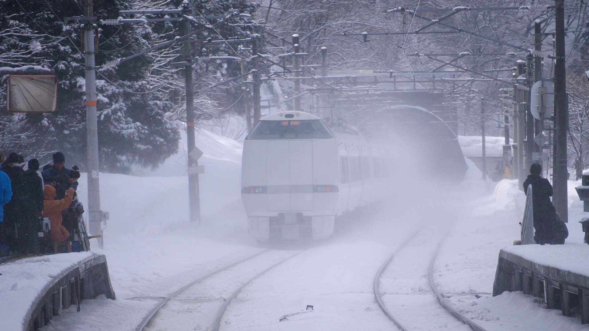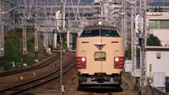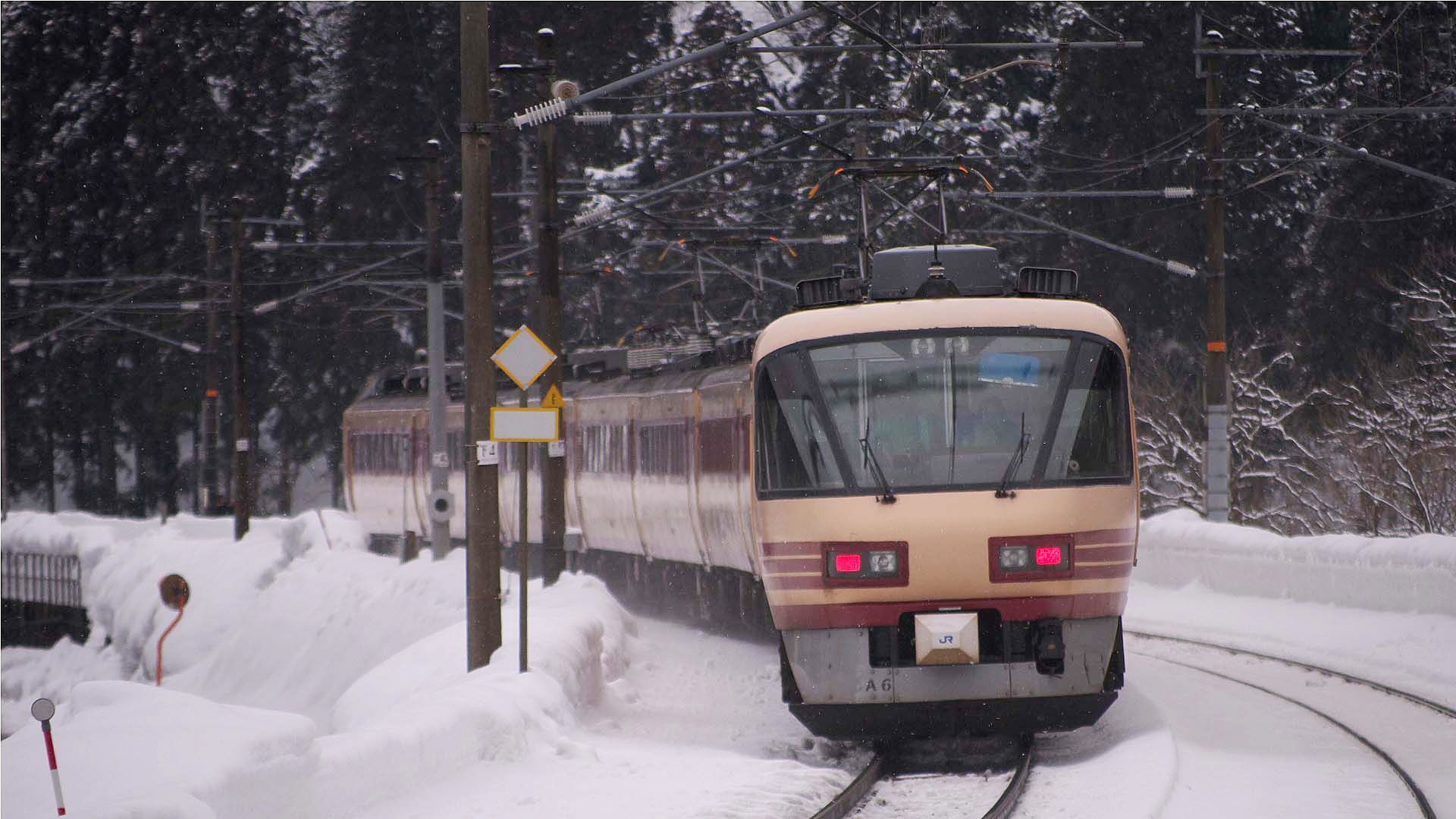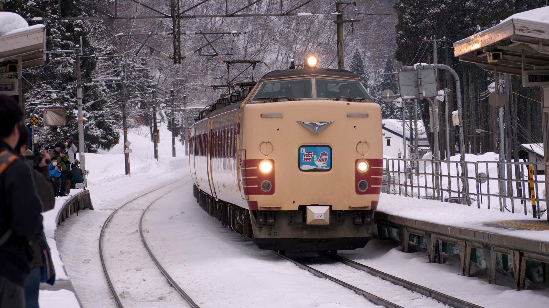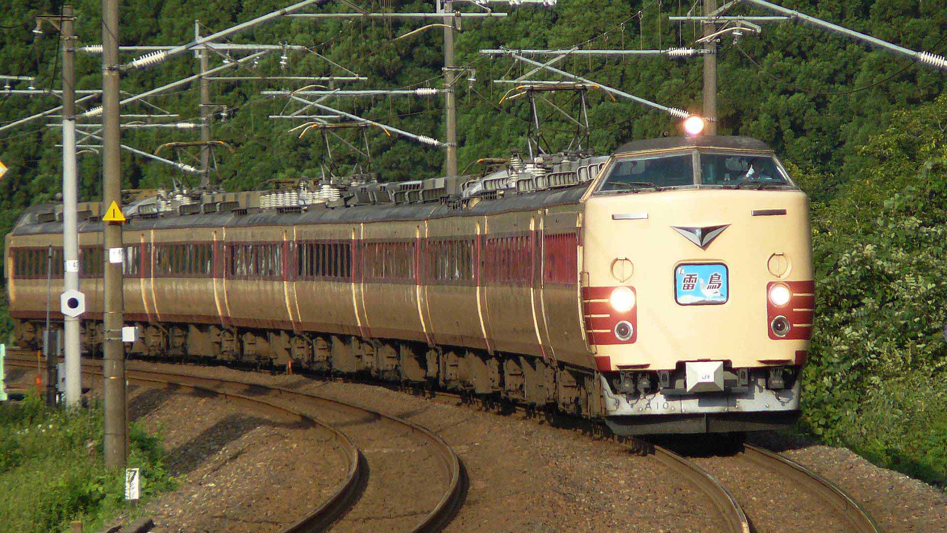 | L特急 雷鳥 (485系国鉄色) 国鉄が設計・製造した交直流特急形車両。 2011年春頃までに683系4000番台へ置き換える事が決定している。 |