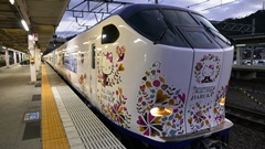| 883系ソニック 小倉駅 モスラ顔。大分県の観光名所ラッピング。 |