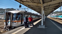| 出発を待つ、新宮12:43発 新大阪16:50着「くろしお22号」 新宮駅 2016.03.22 紀伊勝浦12:24発 名古屋16:10着 ワイドビュー南紀6号と列車交換。(新宮12:41着/12:44発) |