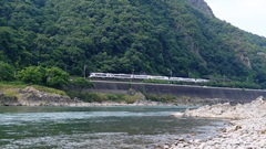 | 特急 ワイドビュー伊那路 (373系) JR東海に在籍する直流特急形電車で、普通列車から特急列車まで幅広い運用に堪える汎用性の高い車両として開発された。 「伊那路」での運用開始は1996年3月16日から。最高速度は120Km/h |