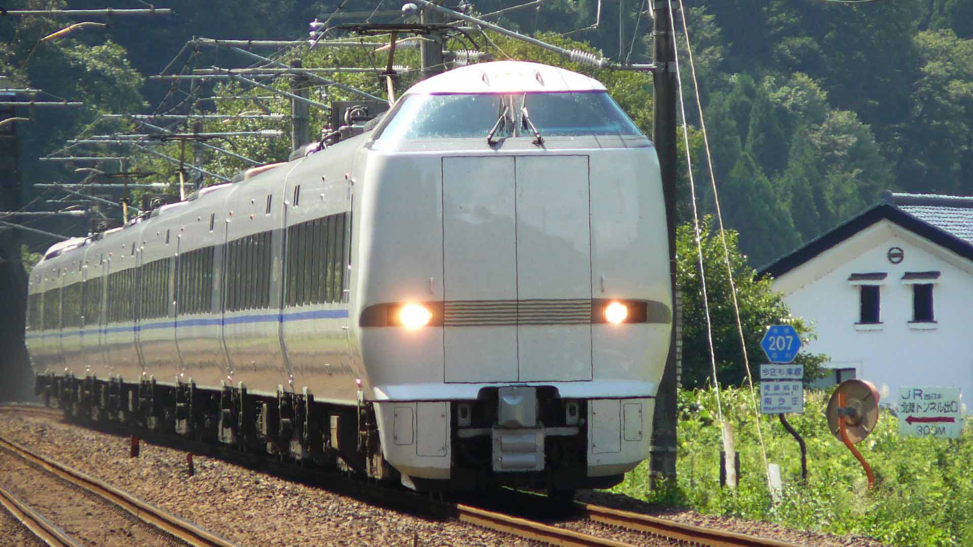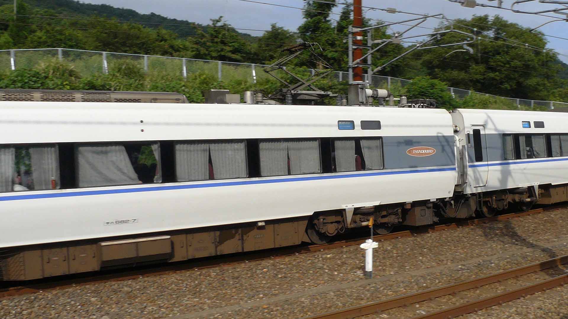 | 特急 サンダーバード (681系・683系) JR西日本が大阪駅 - 富山駅・魚津駅・和倉温泉駅間を東海道本線・湖西線・北陸本線経由で運行する特急列車。 昭和39年10月1日大阪駅 - 富山駅間運行の481系特急「雷鳥」新設。 平成元年3月11日 485系グレードアップで最高速度を130km/hに上げた「スーパー雷鳥」運転開始。 平成7年4月20日681系による「スーパー雷鳥サンダーバード」運転開始。 平成13年3月3日 683系の投入により富山・和倉温泉発着の「サンダーバード」と、金沢発着の「雷鳥」に整理。 北陸新幹線延伸にともない、2015.3.14からは金沢止まり、2024.3.16からは敦賀止まりとなっている。 |