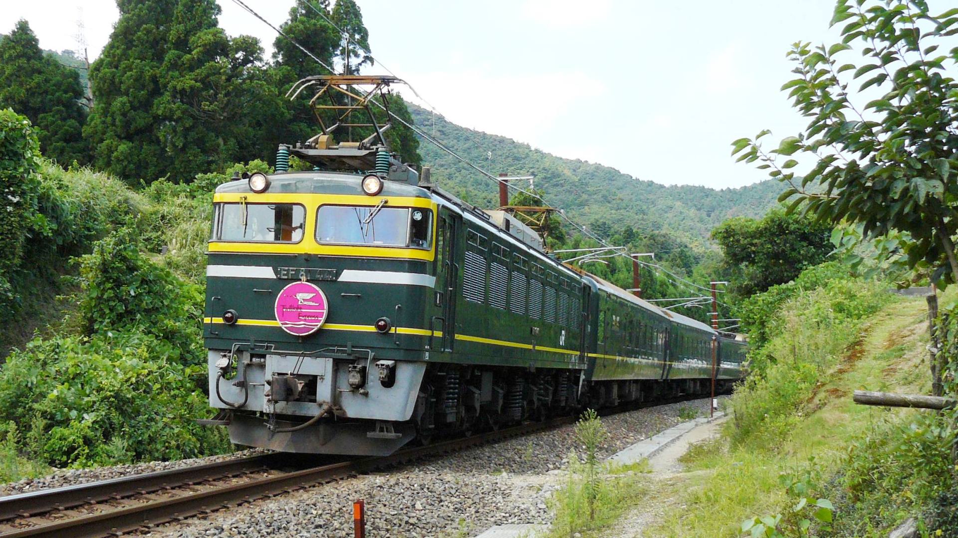 | 牽引は一般色のEF81形電気機関車。 敦賀-新疋田 (疋田カーブ)2009.9 |