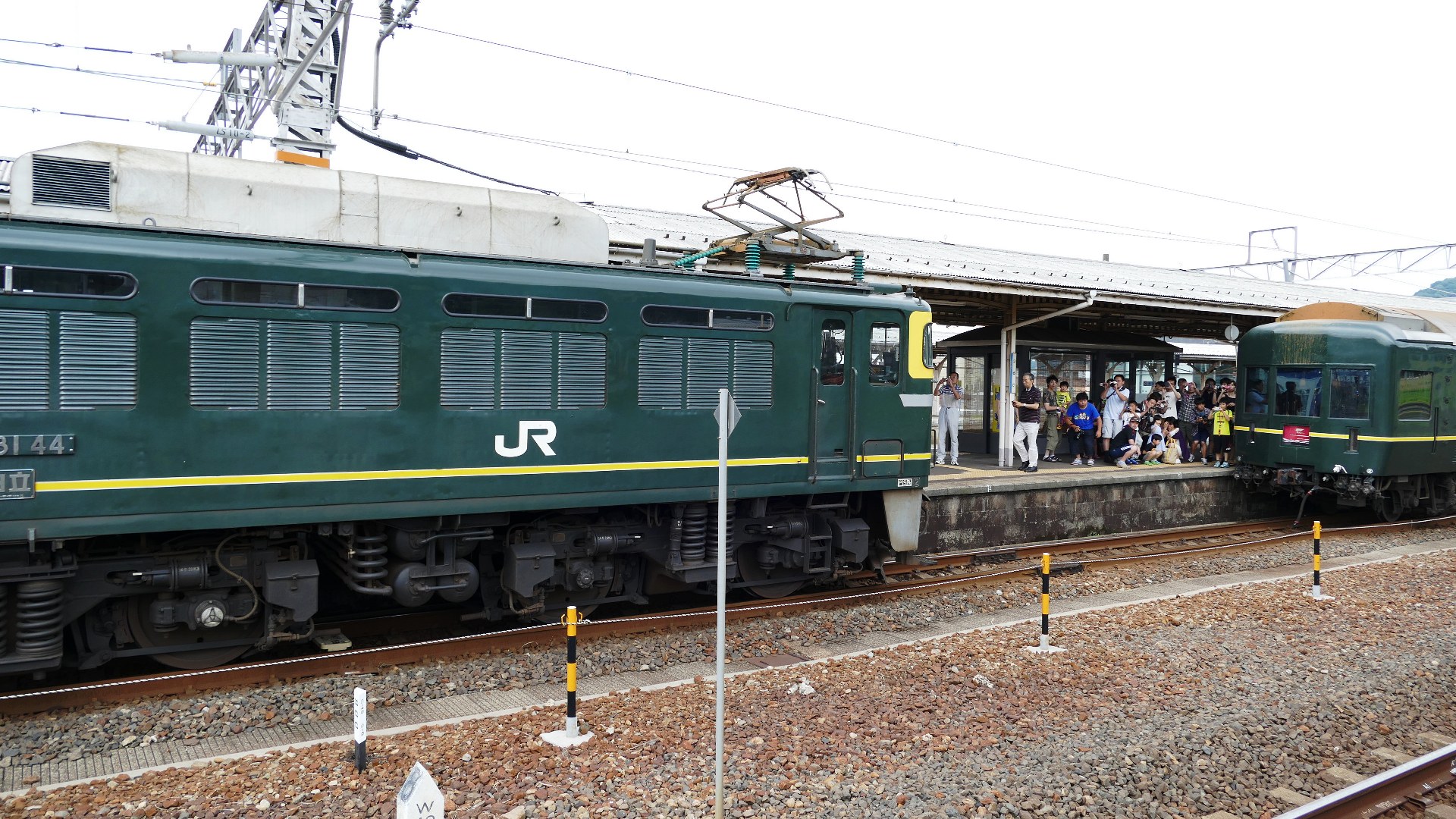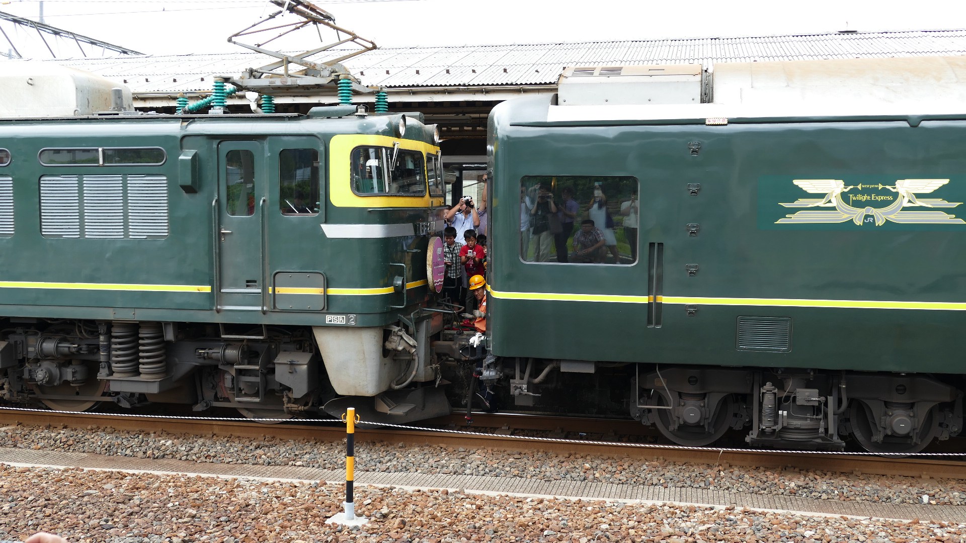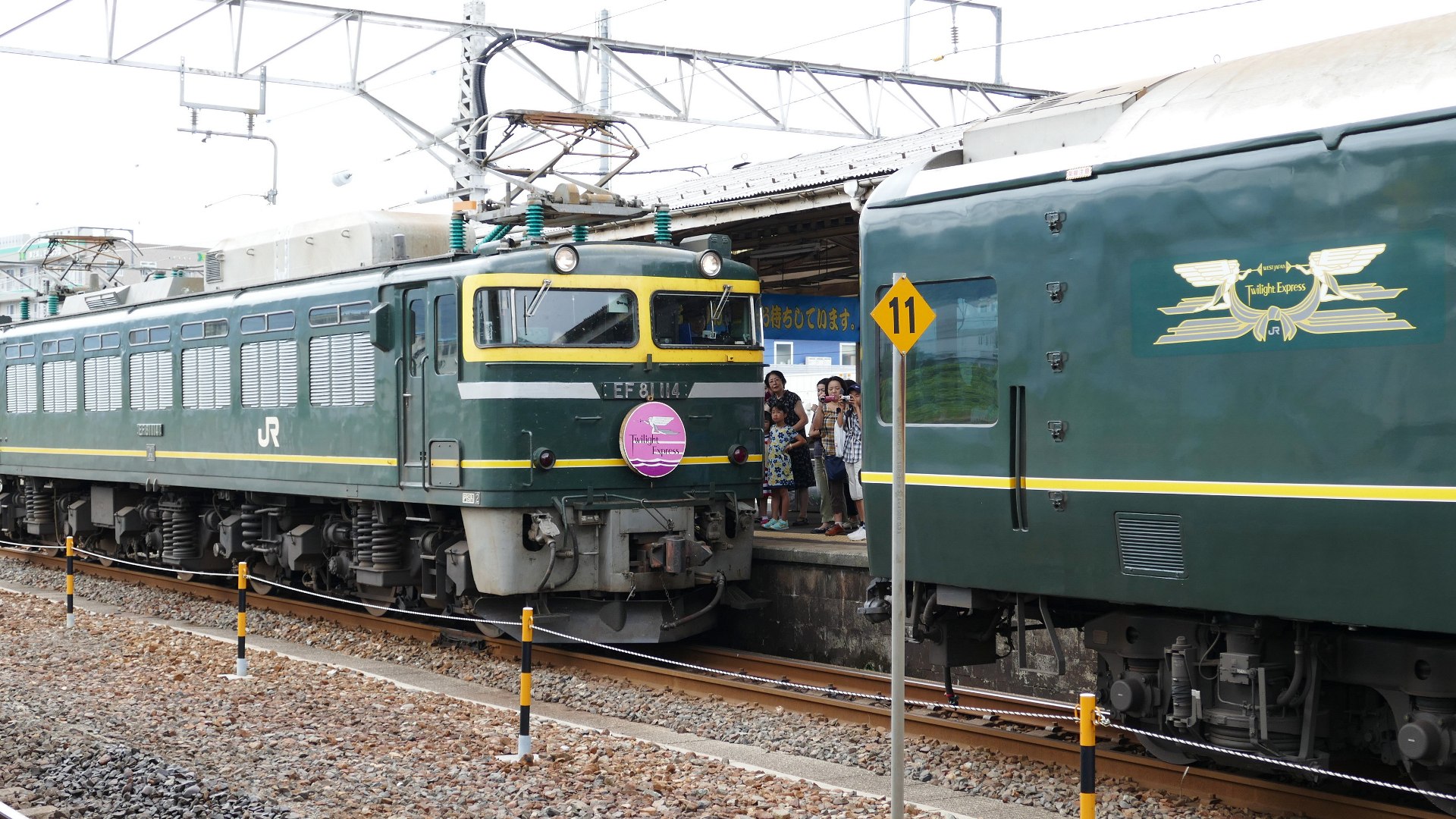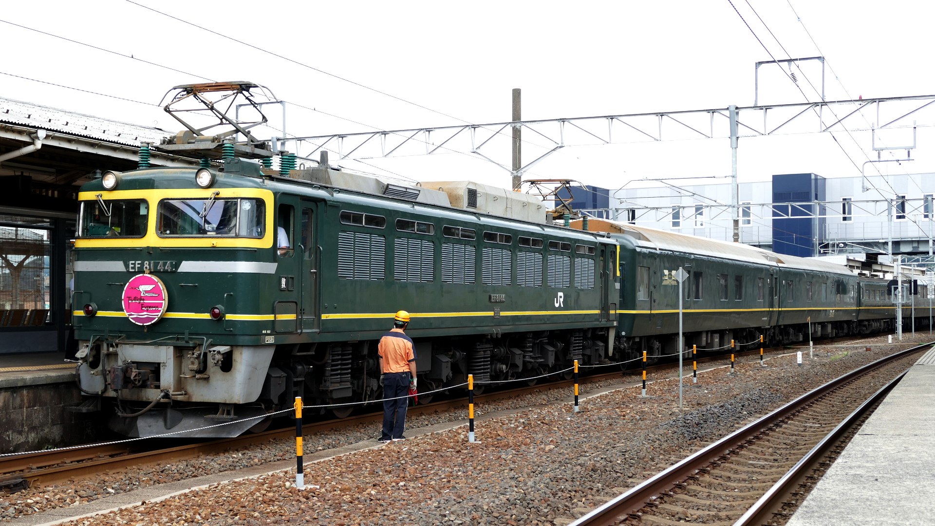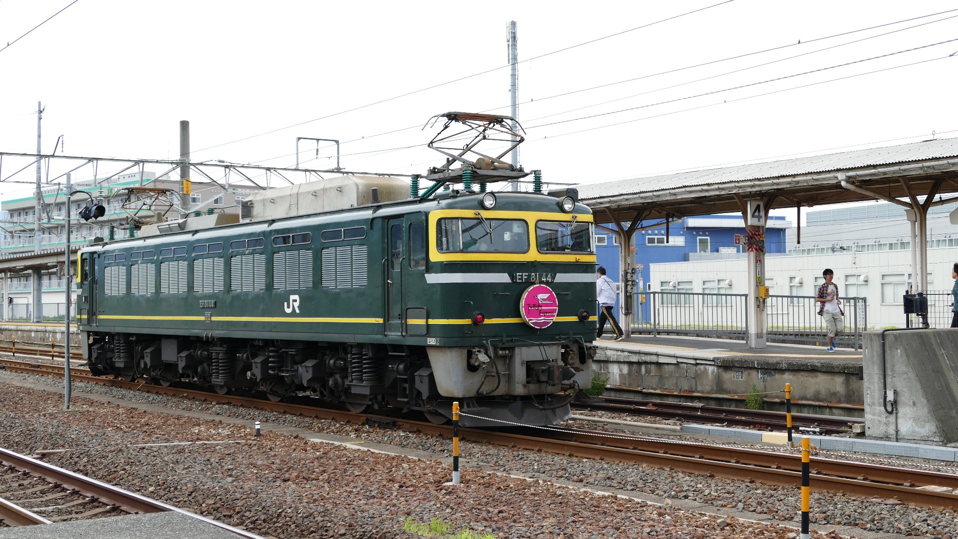 | 上り大坂行き 敦賀駅10:36着 (EF81 44)から(EF81 114)へ機関車交換 10:52出発 2014.08 | |||||||