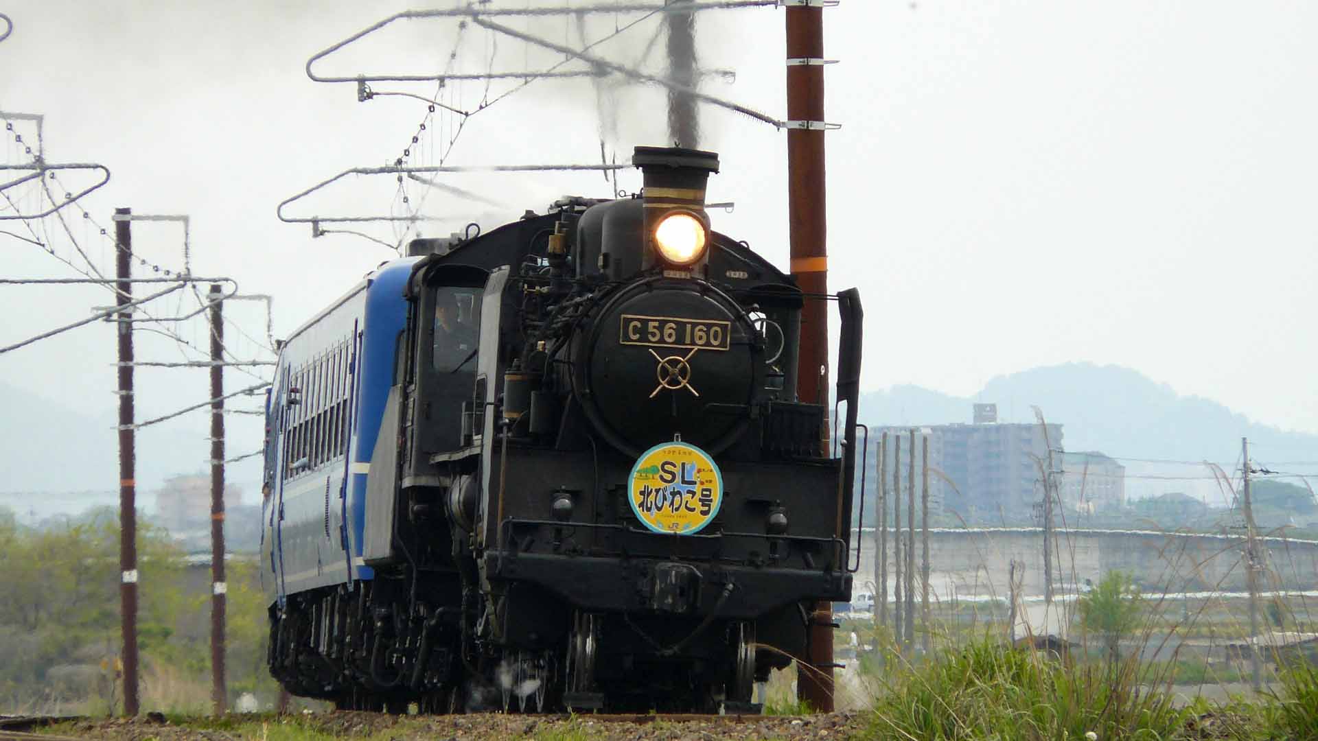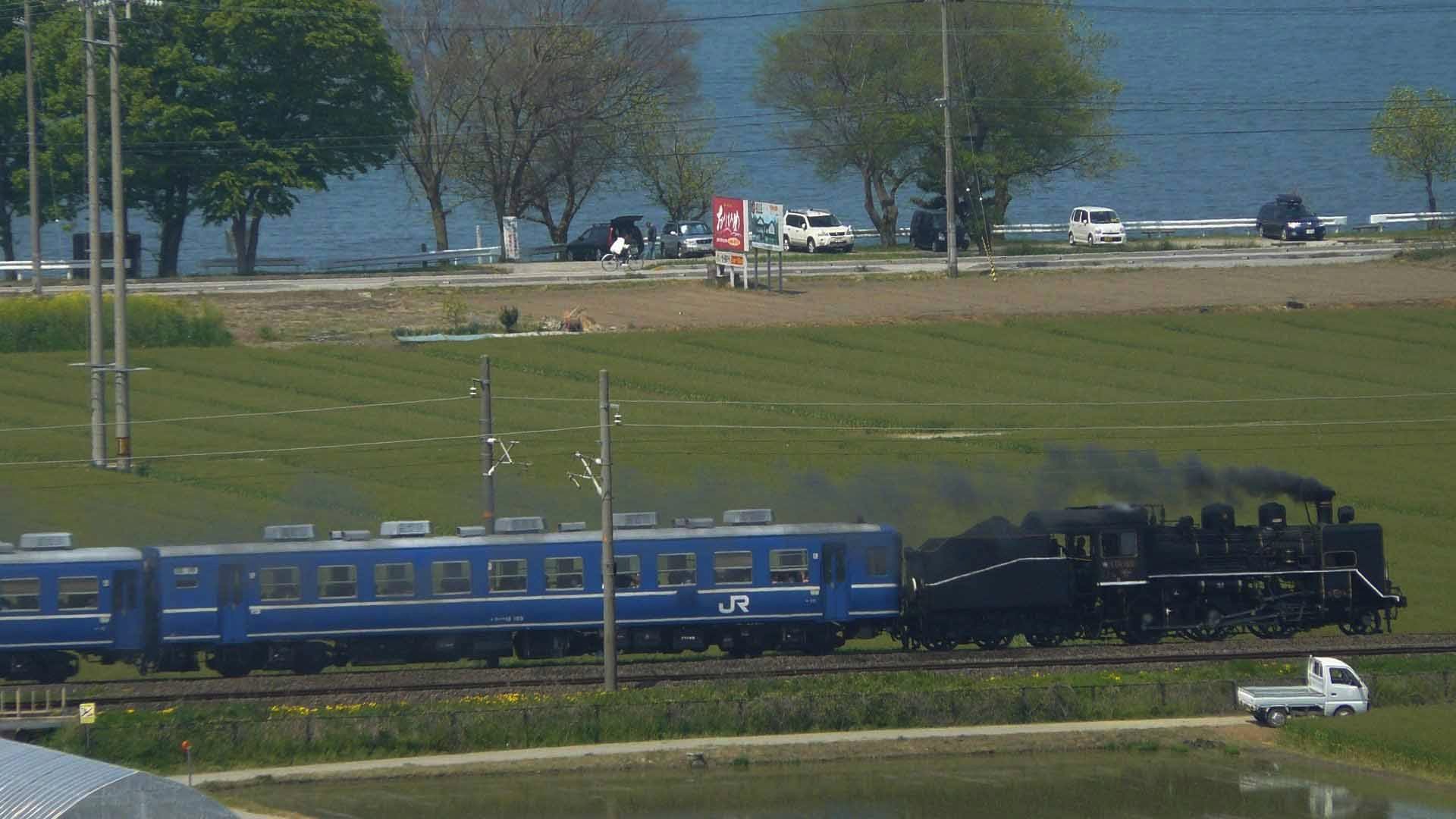 | SL北びわこ3号 長浜-虎姫(姉川橋梁手前) | SL北びわこ号 C56 160 米原駅構内 |