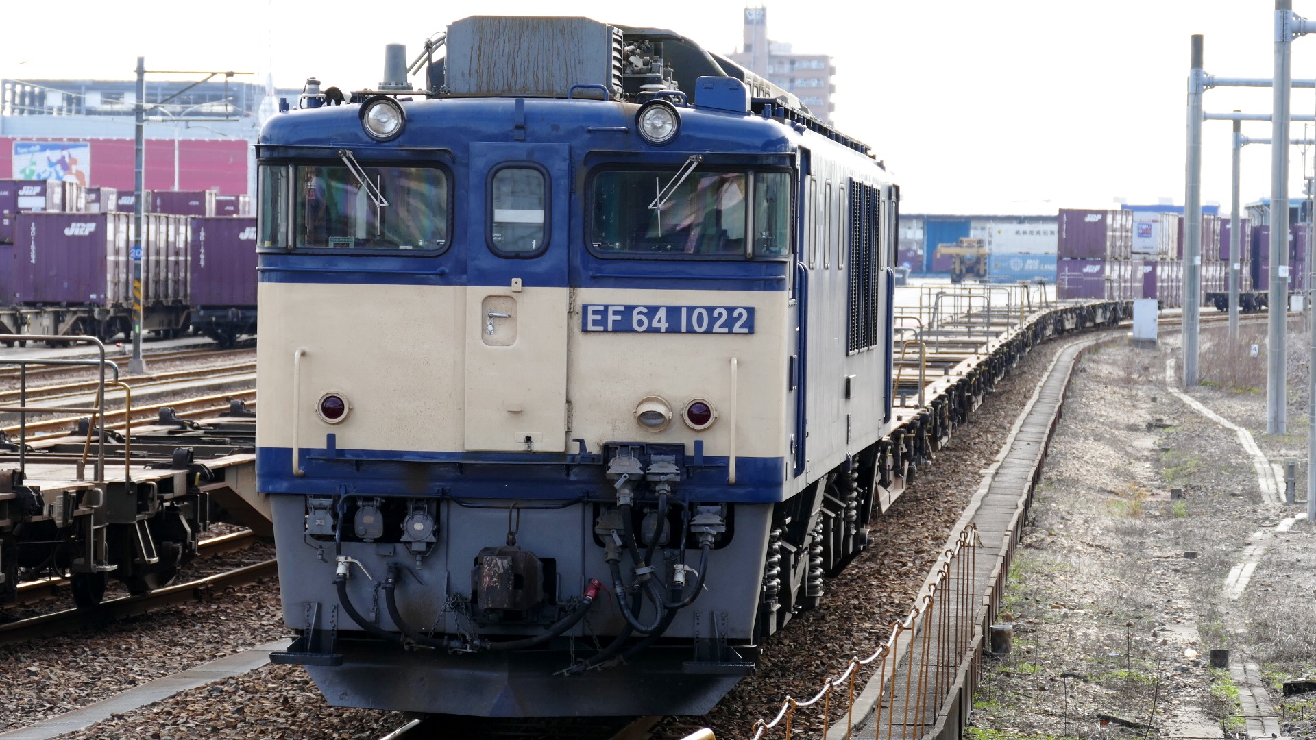 | 愛知デスティネーション開催記念によるイベントの一環で、あおなみ線の南荒子駅隣接の名古屋貨物ターミナル留置線に、国鉄色のEF64がやってきた。 あおなみ線潮凪車庫公開イベント 2018.11.18 |