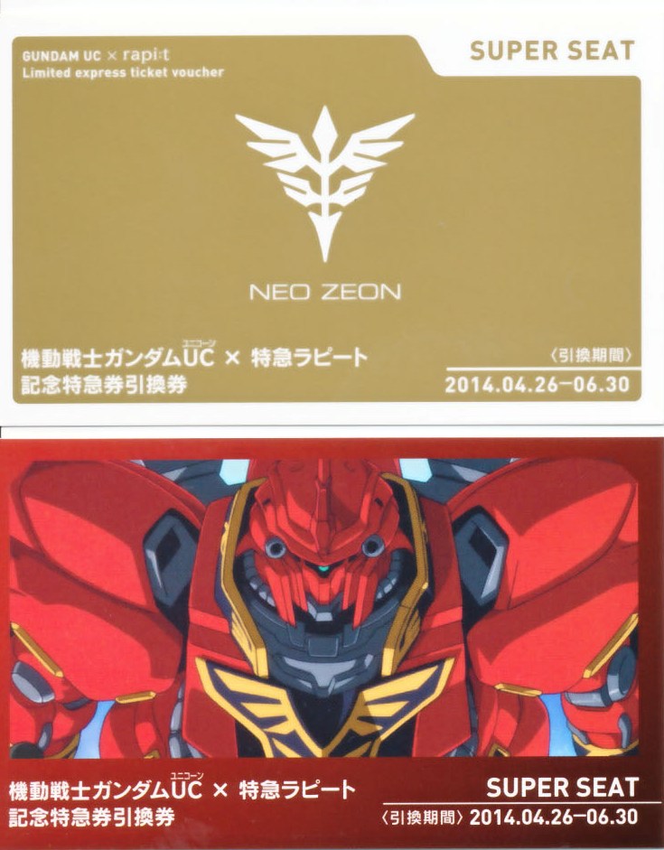 | ガンダムUC × rapi:t 特急ラピート ネオ・ジオンバージョン 2014/06/24 私鉄「南海電鉄」の頁はこちら |