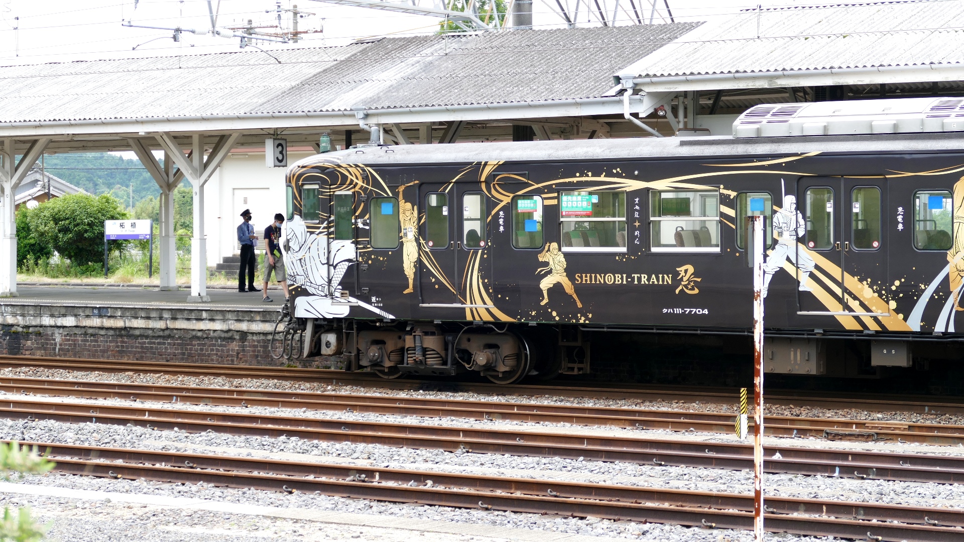 | 113系SHINOBI-TRAINは、2017年2月から運行を開始。いつ会えるか分からない「神出鬼没」の運行で忍者の里をPRしたが、車両検査のため2021年6月末で忍務完了となった。拓植駅 2021.6.20 関連記事 | |||||||