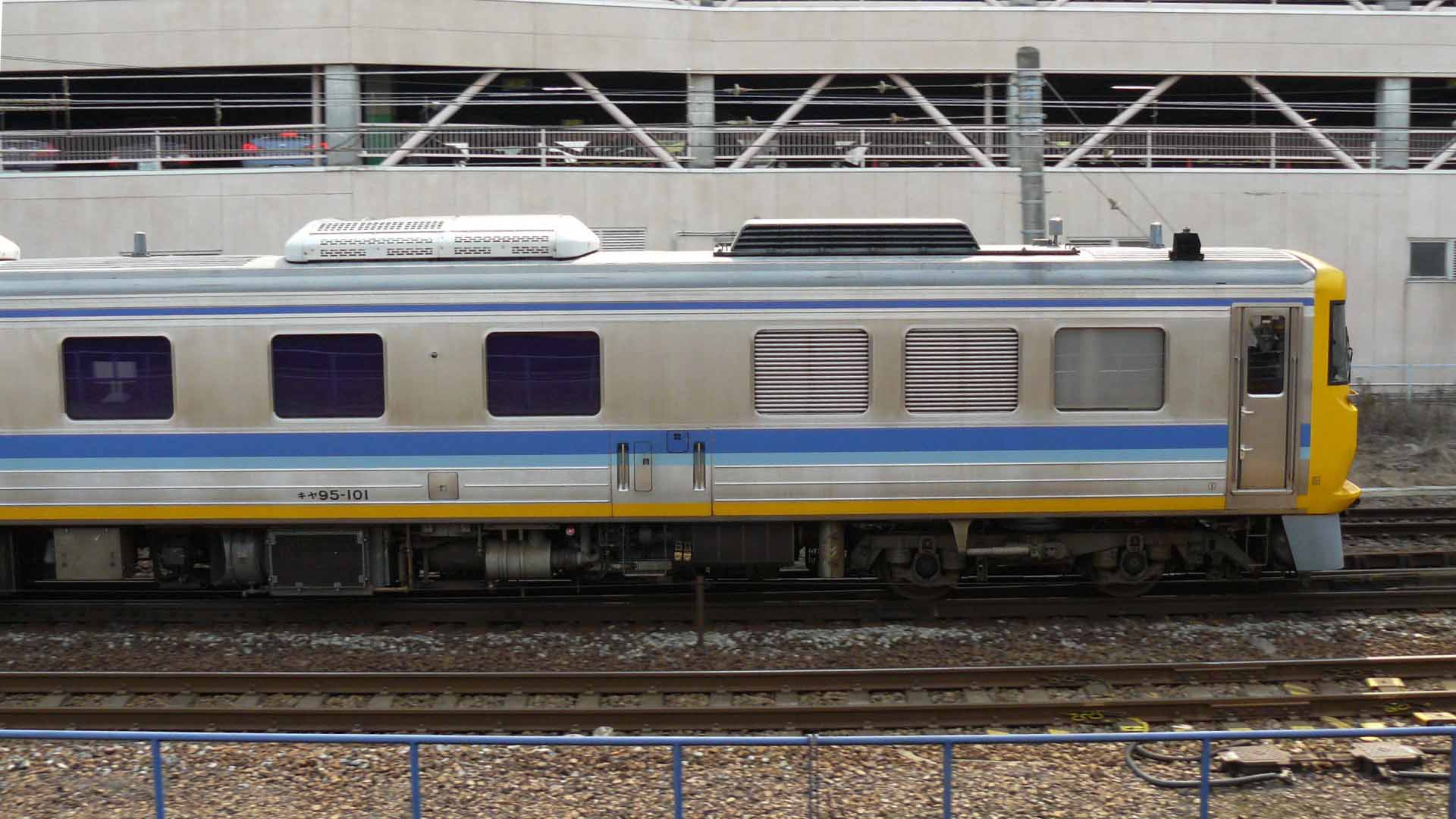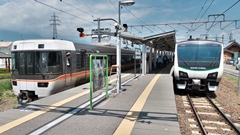 | ドクター東海(検測車) キヤ95系 1996年(平成8年)に登場。軌道関係と電気関係の検測を効率良く行うため、JR東海が保有する検測用気動車。 車両には架線との接触状態などを確認するための下枠交差式パンタグラフが1基搭載されている。 |