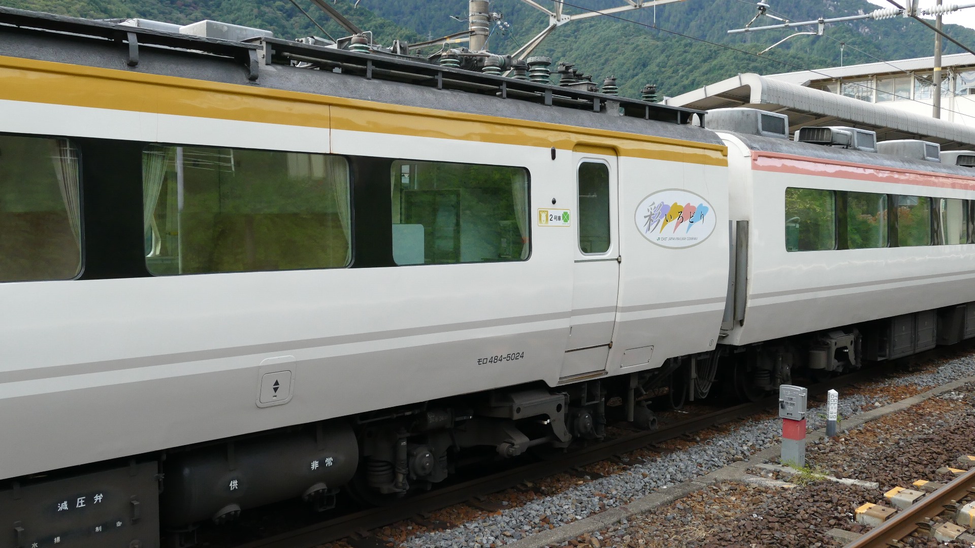 | 485系いろどり(彩)はJR東日本長野支社所属。 6両編成全車グリーン車指定席。先頭車両は座席車、4号車はフリースペース、その他はコンパーメント車。愛称表示器は市販の40V型液晶ディスプレイに交換されている。またパンタグラフは狭小トンネルの中央線乗り入れ対策として485系で初めてシングルアーム式に交換されている。そのルックスから「フリーザ」電車とも呼ばれている。登場から約10年、2017年9月30に日に引退。 |