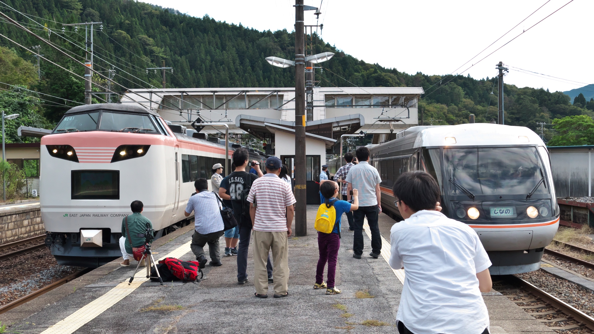 新疋田-敦賀 平日にも関わらず沿線には非常に大勢の同業者が出ていた。 |