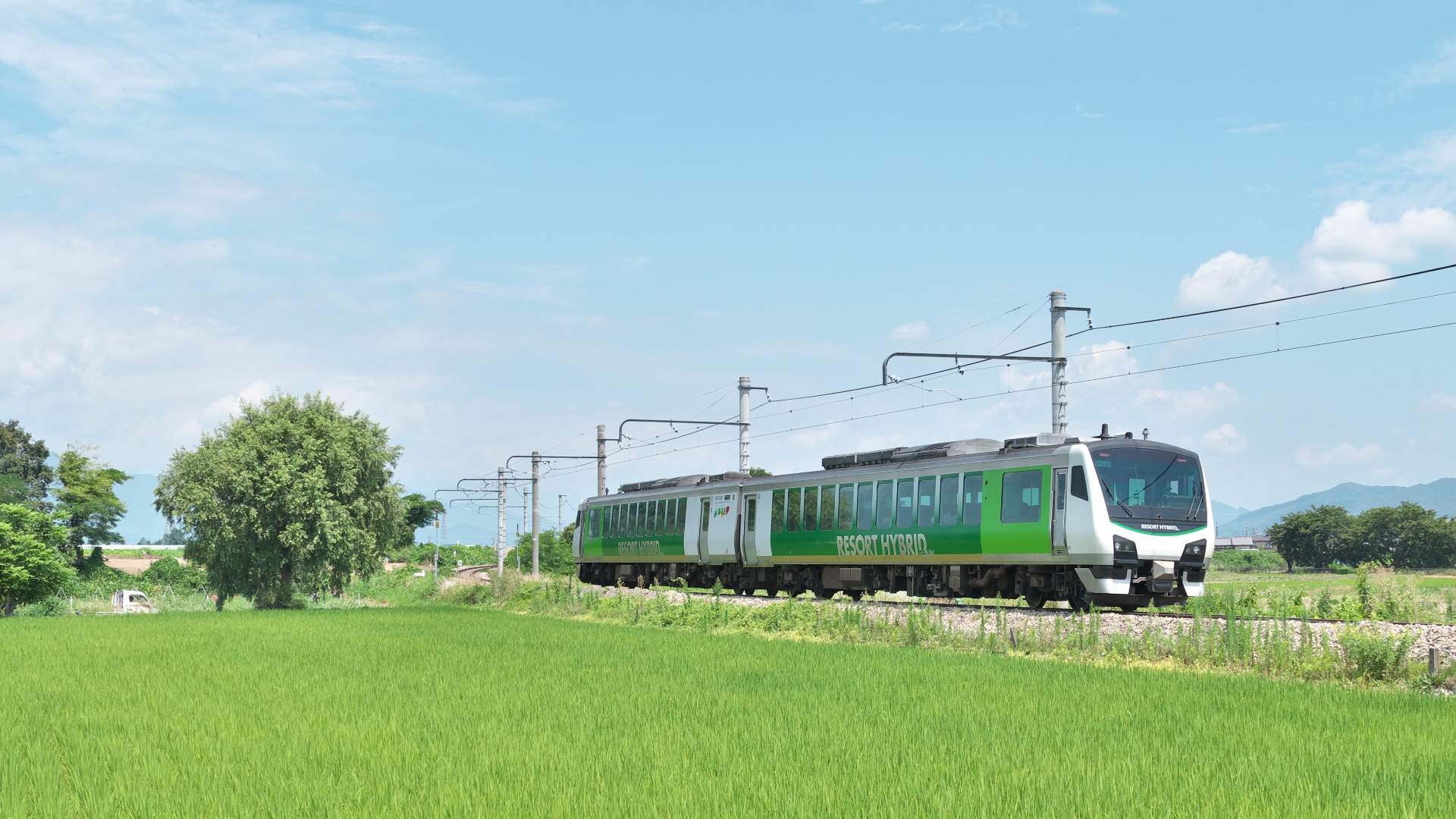 | 観光用気動車HB-E300系 JR東日本が開発したハイブリッド気動車。エンジンを発電機の電力用として使用し、その電力と蓄電池の電力でモーターを駆動する。 |