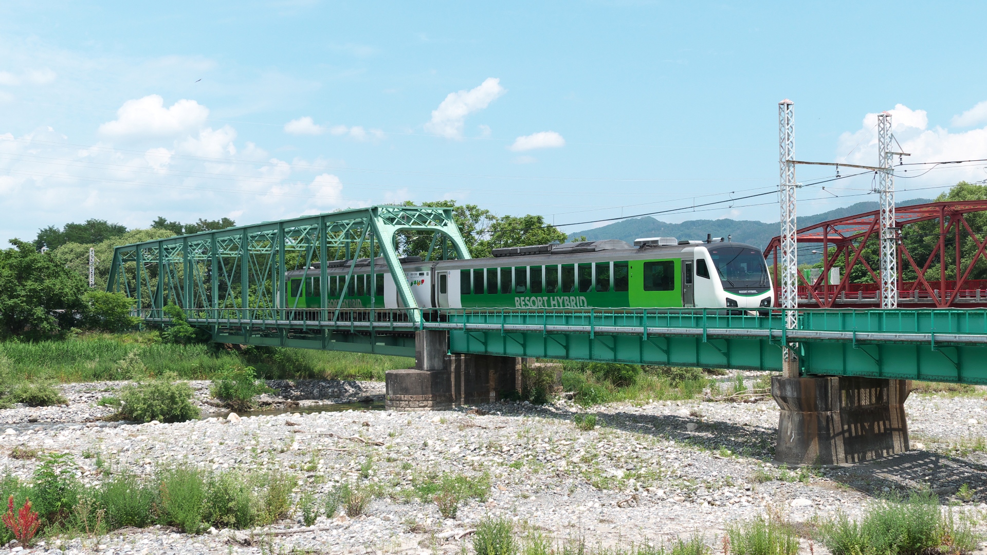 車内は優等列車なみ。快速扱いなので運賃だけで乗車できる。ただし指定席料金要。 | 穂高川橋梁(穂高-有明) |