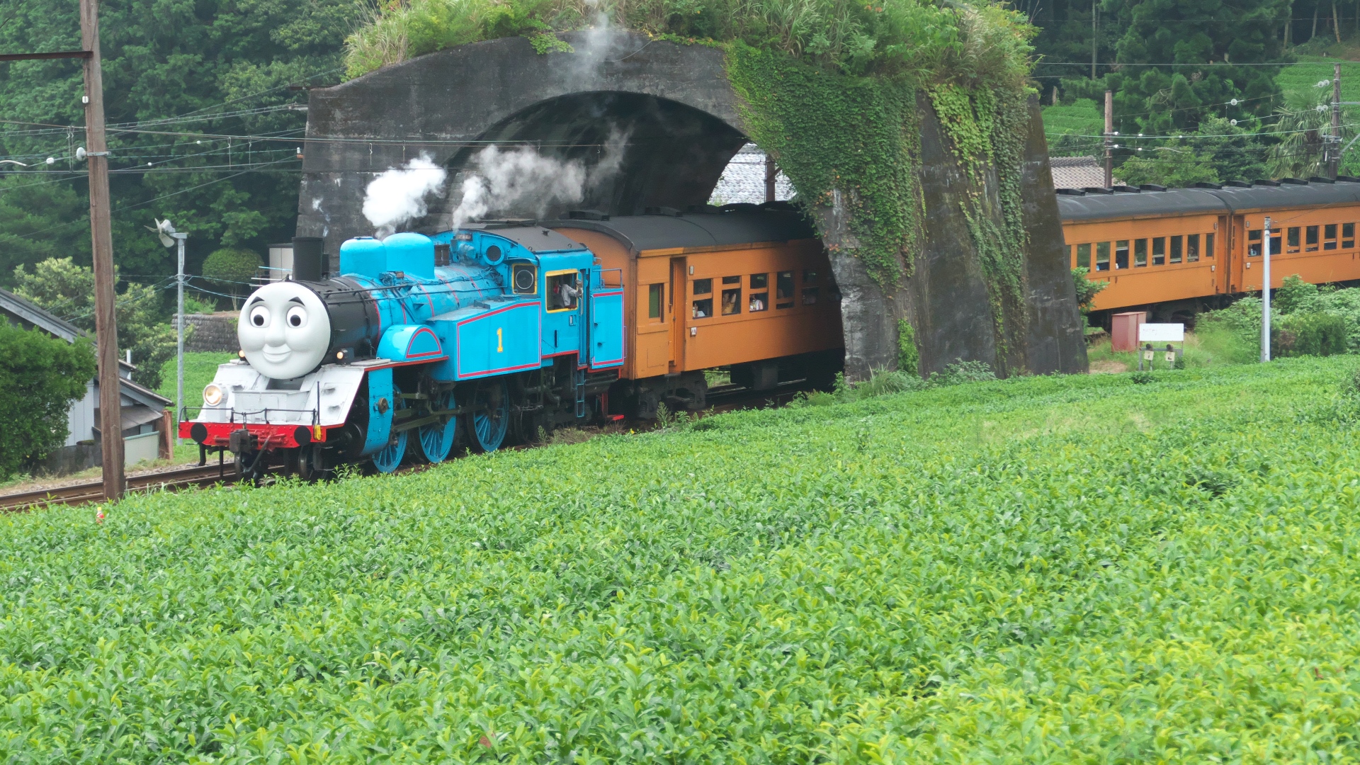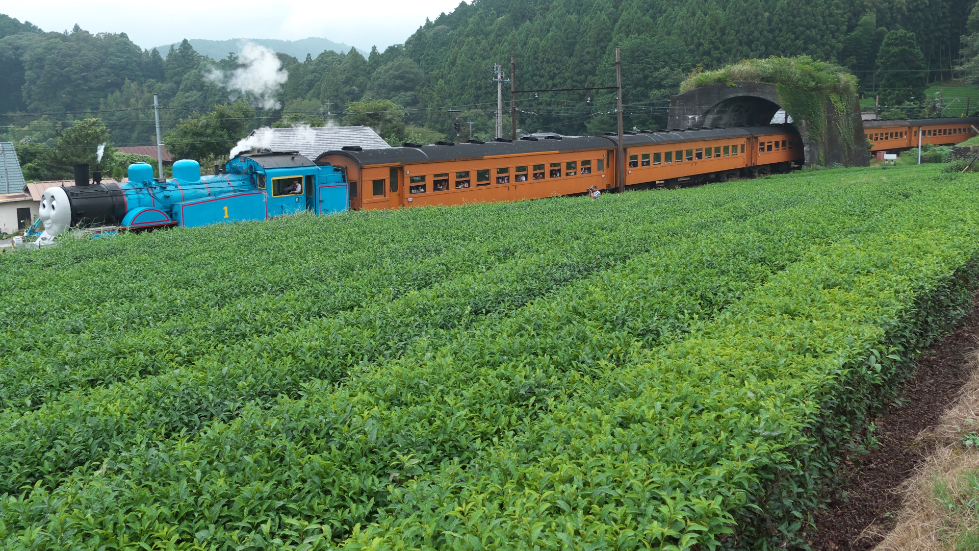 日本一短いトンネルをくぐるトーマス号 地名(じな)駅北側 |