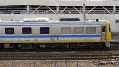 | 稲沢の貨物線を走行する。 珍編成。両端「非貫通型」・中間車は「キロハ」のキハ85の3両編成 |
