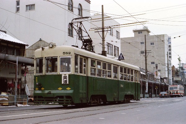 B モ590系 徹明町行き 撮影:昭和52年2月20日 美濃町線路面区間 |