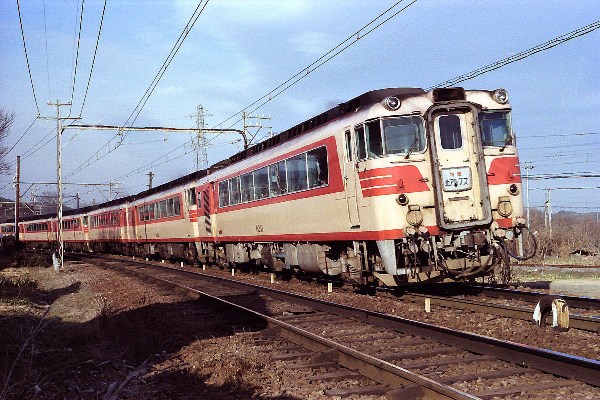 K キハ8000系 急行「北アルプス」 撮影:昭和51年2月頃 岩倉駅 |