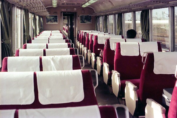 O キハ8000系 特急 豊橋行き 撮影:昭和52年4月17日 車内風景 急行時代は豪華なシートだったが、 国鉄特急としては見劣りする 転換クロスシート |