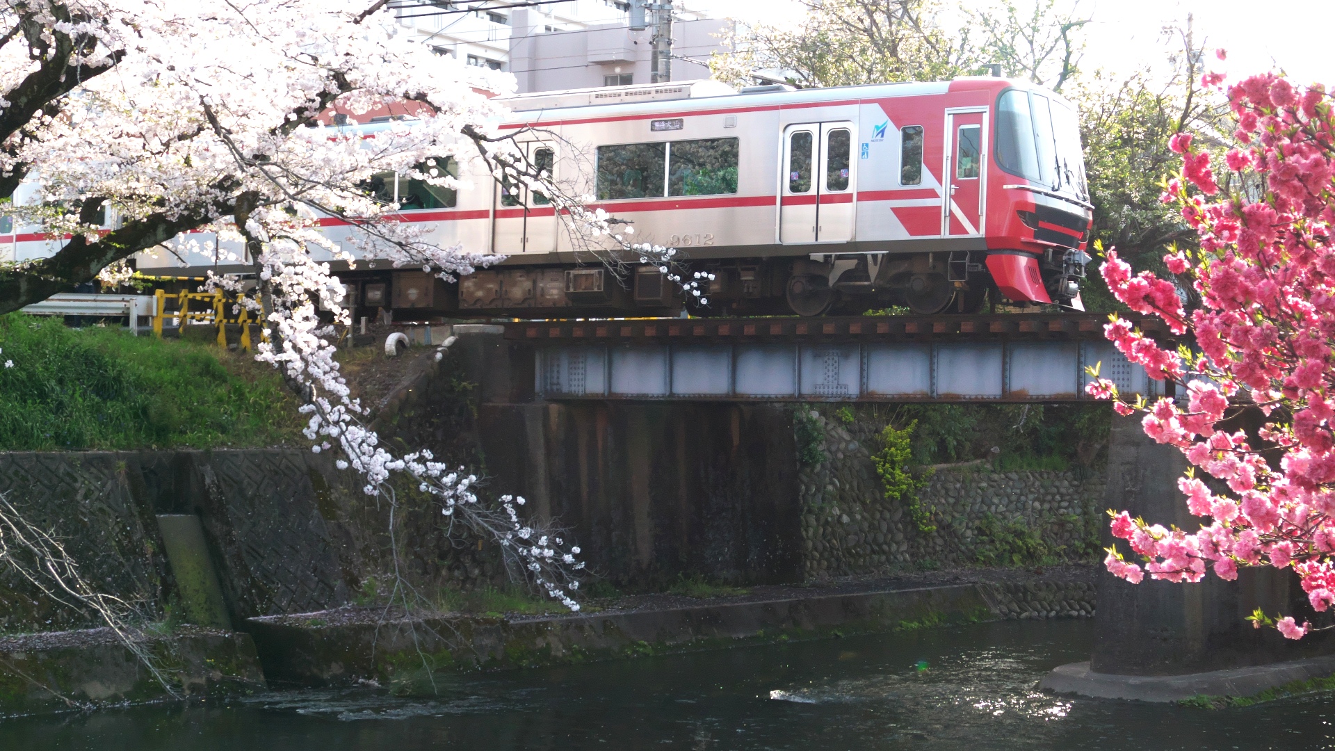 | 蒲郡線 白帯車 拾石川の桜 2022.3.27 |
