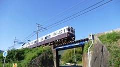 | 5000系 平成20年3月、余剰となった1000系パノラマsuperの主要機器を再利用してステンレスで新造した車体と組み合わせ3扉通勤車としてデビュー。 正面は非貫通式、車内はロングシートで、最高速度120km/hの1000系と同じ高速走行性能車両。 |