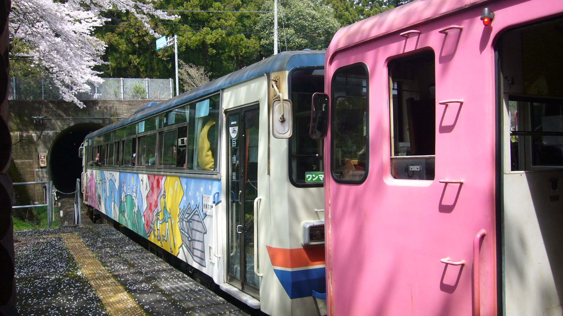 | 樽見鉄道 1984年、西濃鉄道・住友大阪セメントおよび沿線自治体などが出資する第三セクター方式の鉄道会社として設立。 国鉄樽見線時代の運行は"大垣-美濃神海"だったが、 1989年に神海 - 樽見間延長開業している。 写真にある「ナガラ1形」は、ハイモ295-315が事故に遭い長期離脱のため桜ダイヤに合わせその穴埋めとして借り入れているらしい。 |