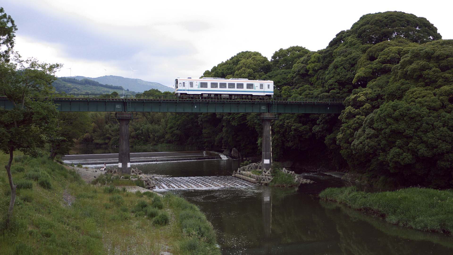 日当駅ホームより 第八根尾川橋りょうの向こうにも トンネルがある |