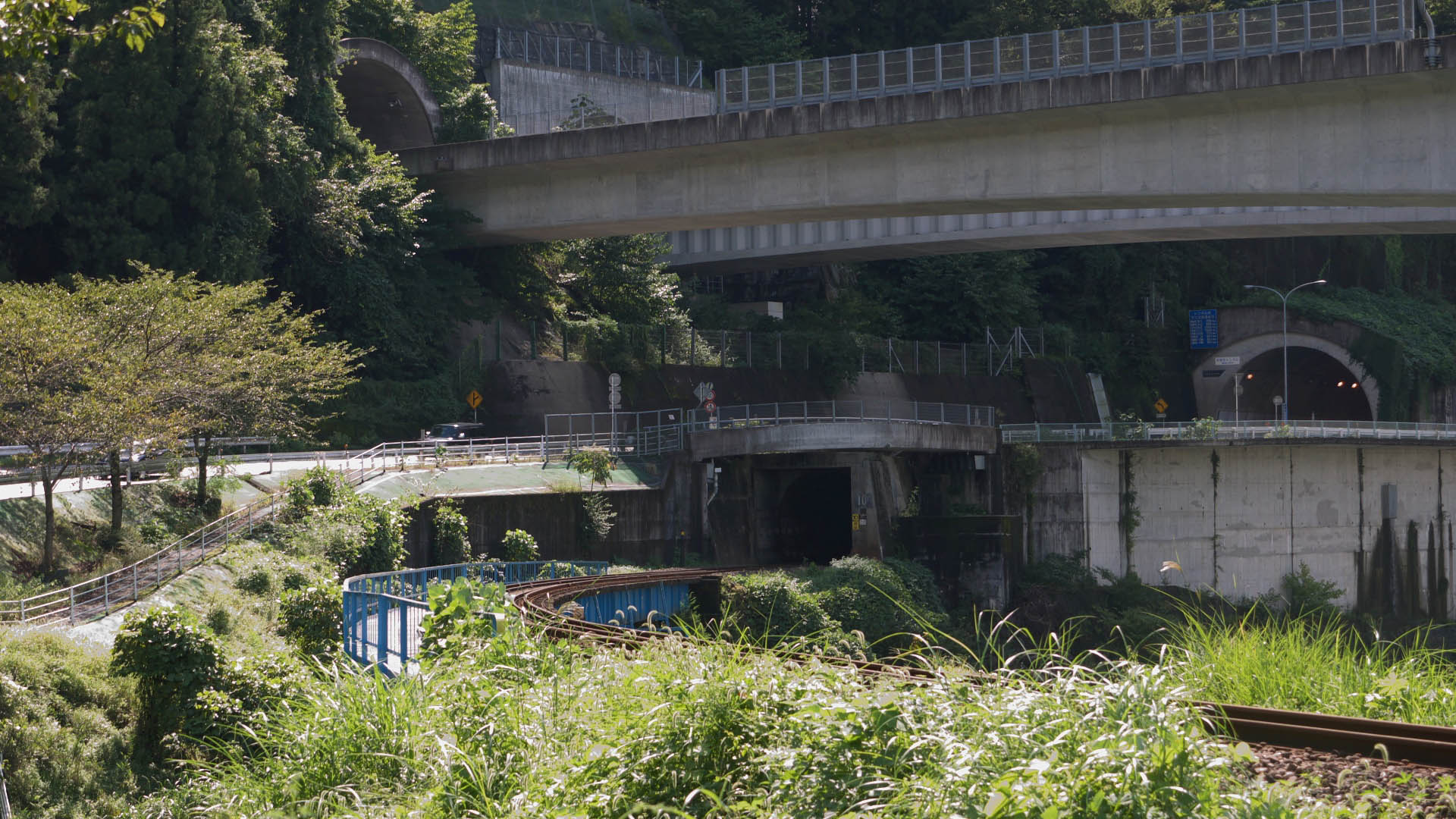深戸-相生にあるトリプルトンネル 上から東海北陸道、国道156号線、そして 長良川?道第10号トンネル 2011.09.18 |