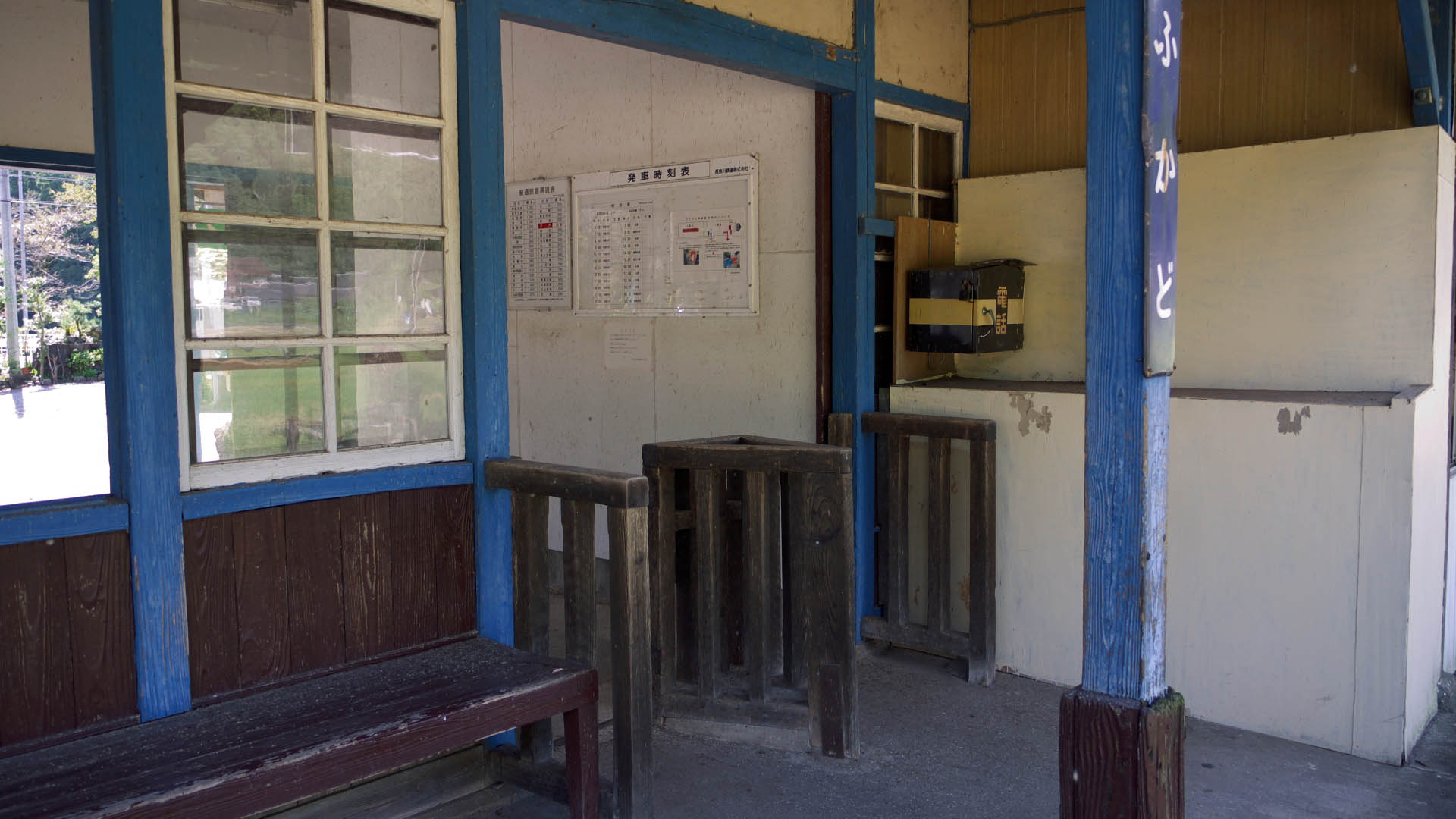 深戸駅 ラッチ(改札)や窓や戸もすべて木造 2011.09.18 |