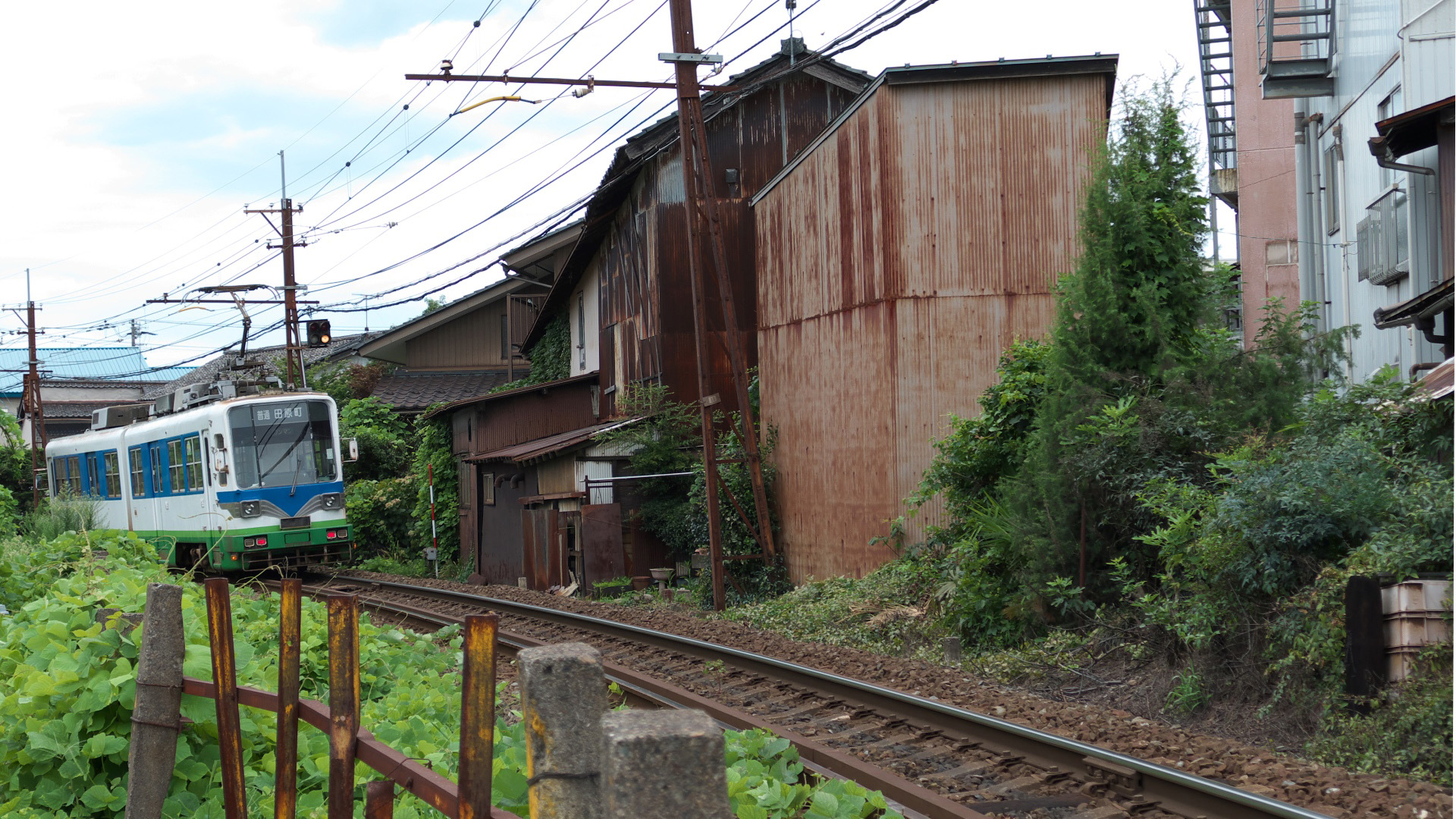 交換所を過ぎ中強羅駅。ケーブルがよく見える | |||