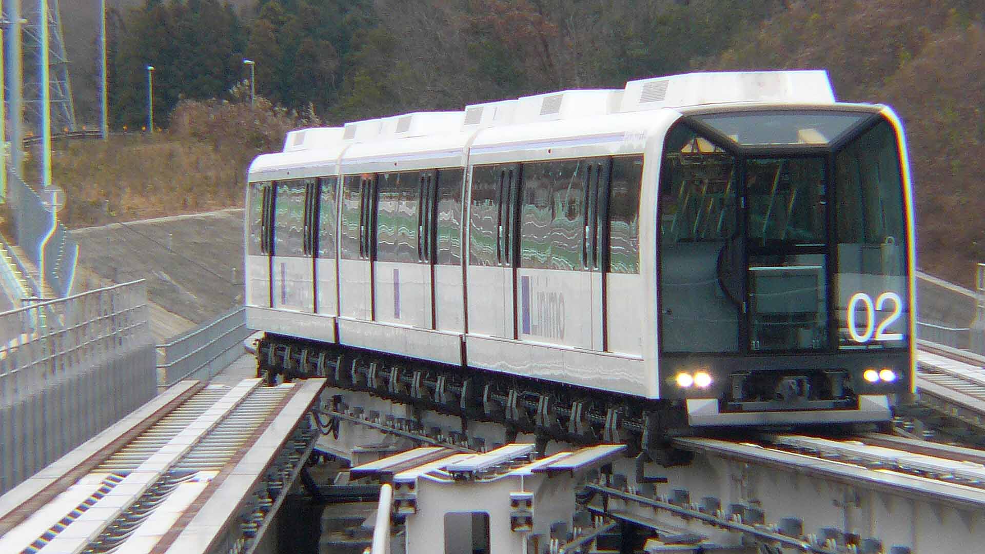 | リニモ Linimo 東部丘陵線 藤が丘駅から八草駅までを結ぶ、愛知高速交通の常電導吸引型 (HSST) による日本初の磁気浮上式鉄道(リニアモーターカー)である。 電動機や車輪を持たないため、騒音・振動源が少なく、また、車輪が空転するリスクも無いため、加・減速や登坂性能に優れ、 ゴムタイヤ式よりもさらに静かで乗り心地がよく、最高速度も上回る、などの多くの利点を持つ。車両は常に浮いており、 停車中は機械式ブレーキにより静止させている。扉が閉まり発車するときに「ドン」という音がする。これは、機械式ブレーキの解除による音である。 |