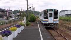 24号、谷汲口駅到着 ハイモ230-313 1/60秒 F5.6 |