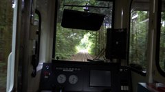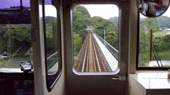 | 上大平台信号場スイッチバックで、クモハ2000型(サン・モリッツ号)と交換 | 登山鉄道は最大勾配80‰・曲線半径30m | 箱根登山鉄道鋼索線 箱根登山ケールカー 箱根湯本駅 |