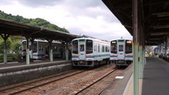 | 伊勢鉄道 旧国鉄特定地方交通線の伊勢線(河原田駅 - 津駅 22.3km)を運営している三重県出資の第三セクター方式の鉄道会社である。 関西本線と紀勢本線に挟まれ、特急「南紀」や快速「みえ」といった速達列車が本来の建設目的である両線間の短絡線的に 通過する直通運転を行っている。 車両はイセIII形4両を所有しており、最高運転速度100km/hと高性能な軽快気動車である。平成15年営業運転を開始。 中瀬古 - 南四日市間は複線化されているが。単線区間でもなどほぼ全線に渡って複線の用地が確保されているが、 この区間の複線化は現在も検討されていない。 |