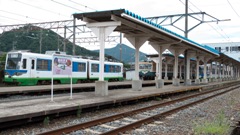 | えちぜん鉄道 京福電気鉄道が福井県下で運営していた越前本線(現 勝山永平寺線)・三国芦原線を引き継いで、2002年に福井市・勝山市が出資する第三セクター方式で運営している。 MC6000形は愛知環状鉄道が2000系導入で余剰になった100系/300系の改造版。MC7000形は飯田線の119系を導入、改造したもの。 |