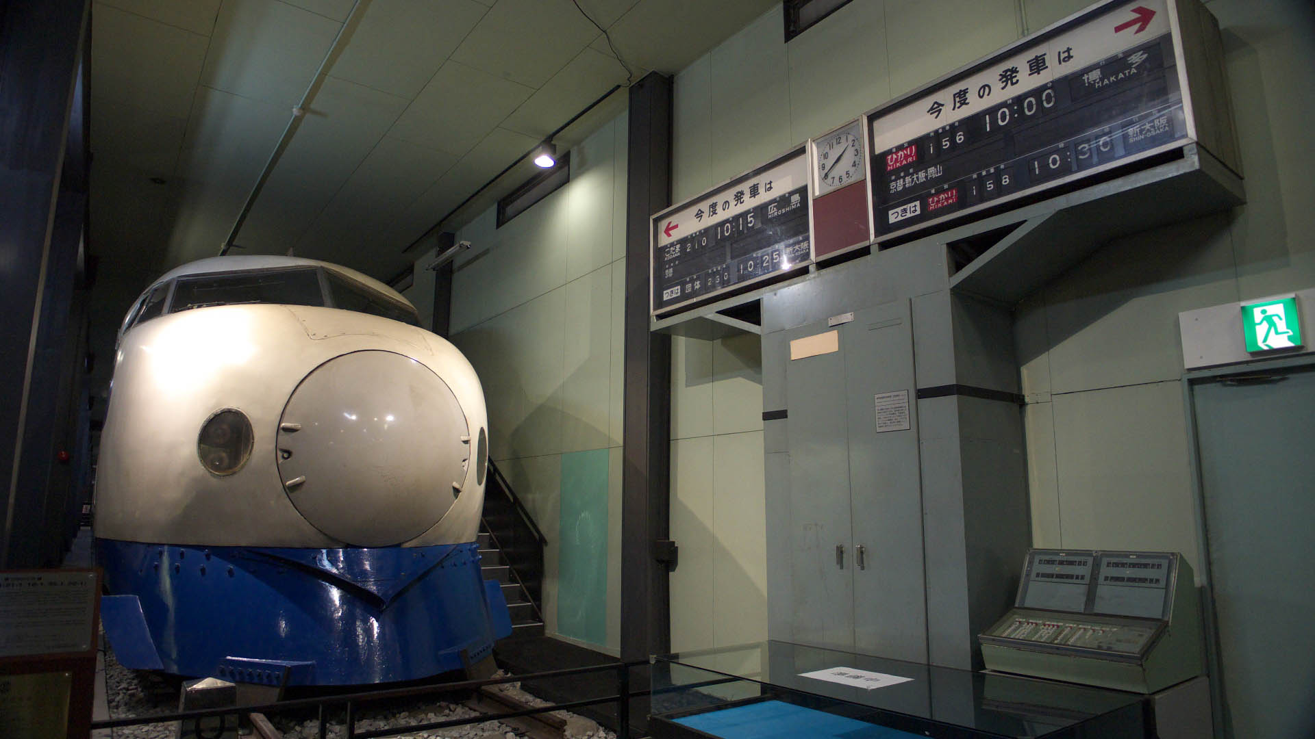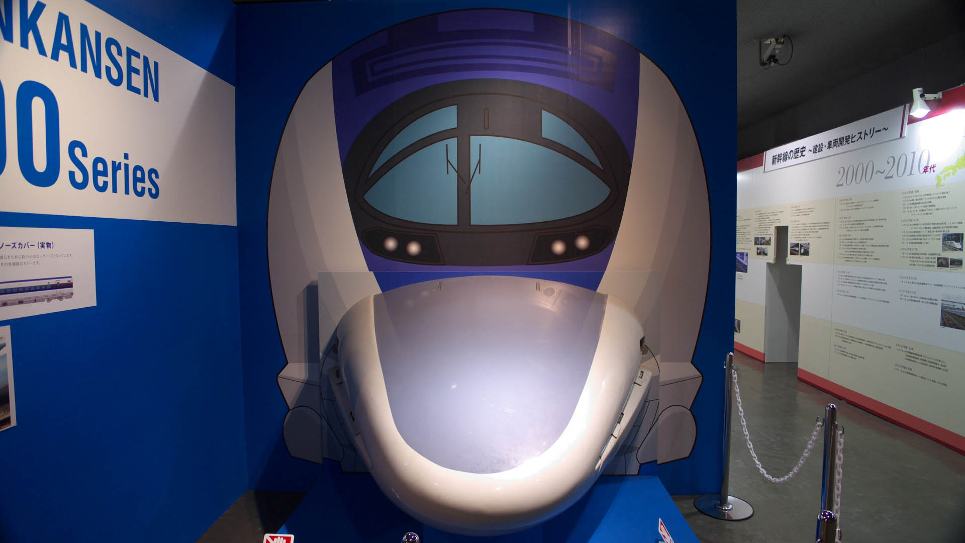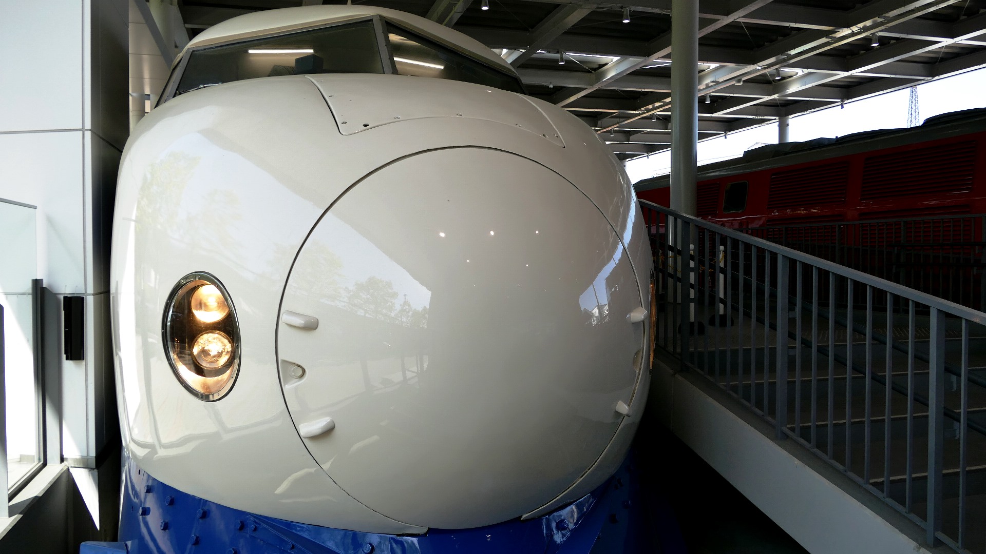 ボンネット型車両の運転台 | 企画展「日本縦断 新幹線〜その魅力を探る〜」の出口にあった500系ノーズ | 屋外展示場は1914年完成の2代目京都駅1番ホーム上屋で使用されていた部材を再利用して建設された | ||||
