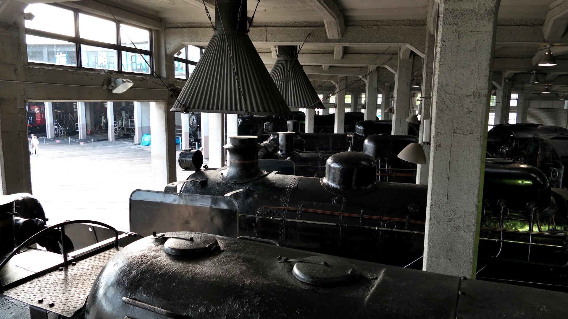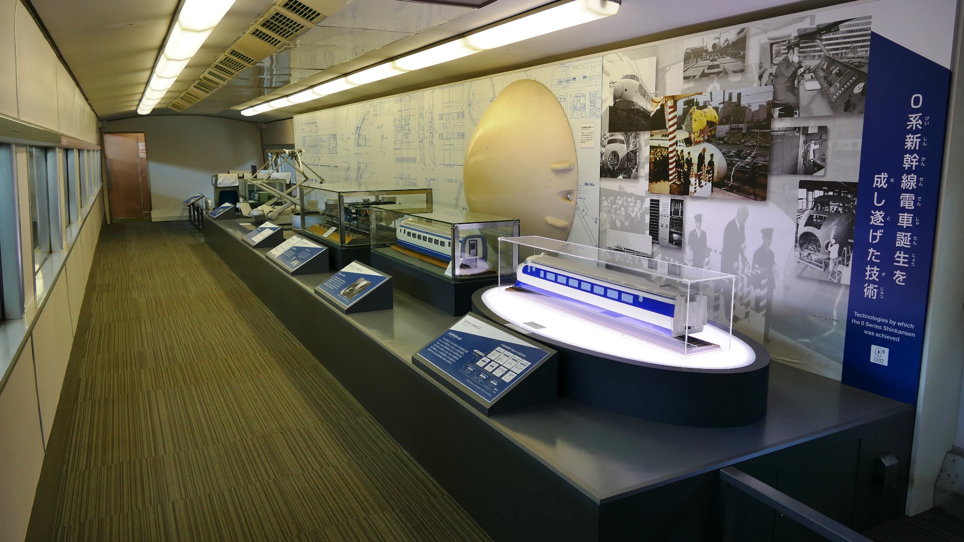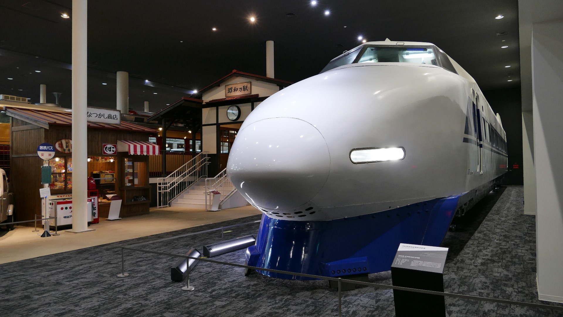 ボンネット型車両の運転台 | 企画展「日本縦断 新幹線〜その魅力を探る〜」の出口にあった500系ノーズ | 屋外展示場は1914年完成の2代目京都駅1番ホーム上屋で使用されていた部材を再利用して建設された | ||||