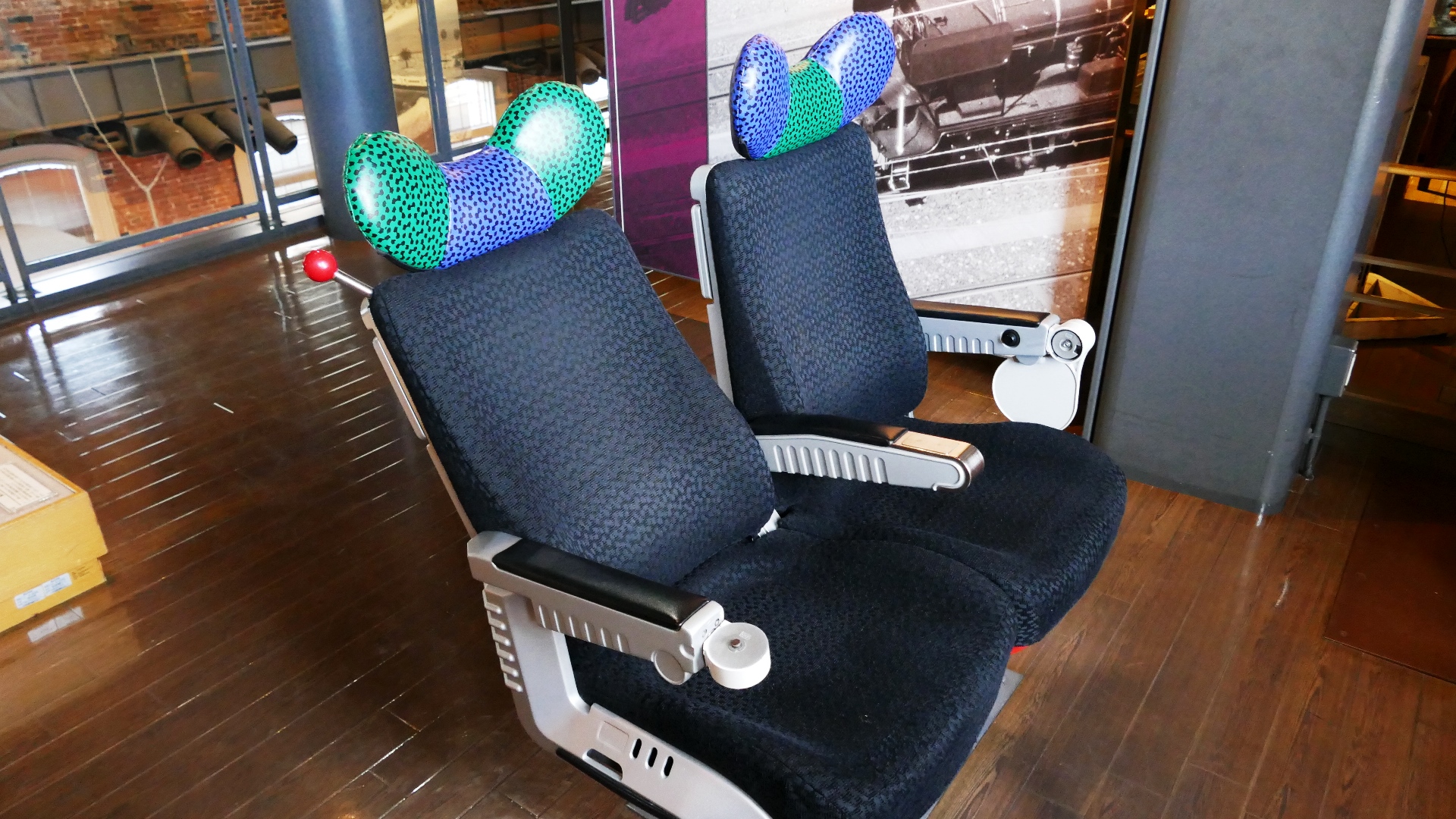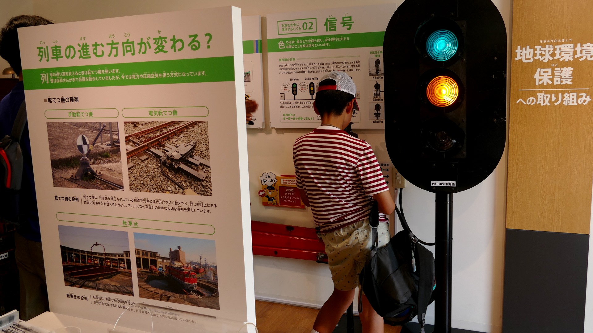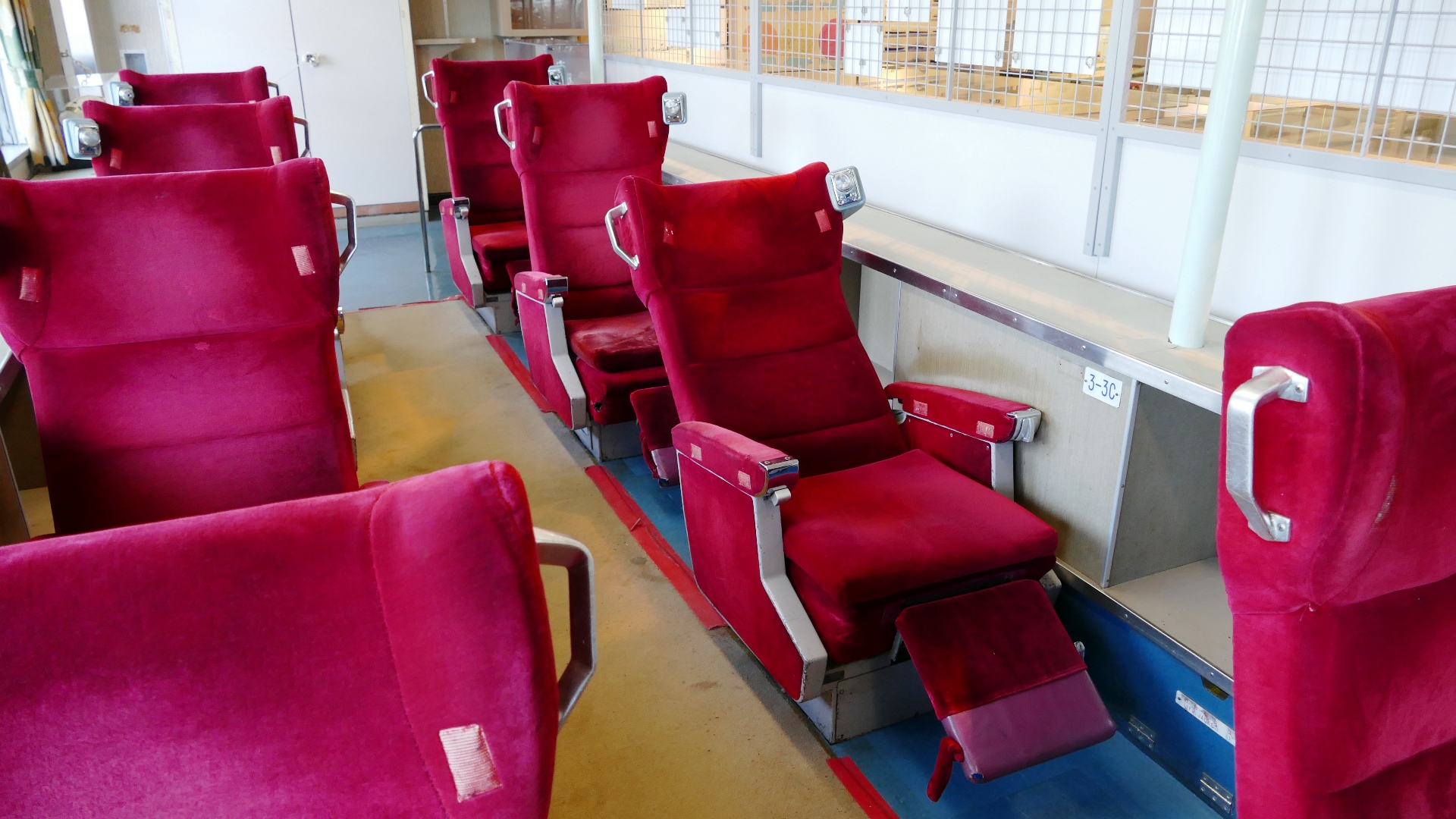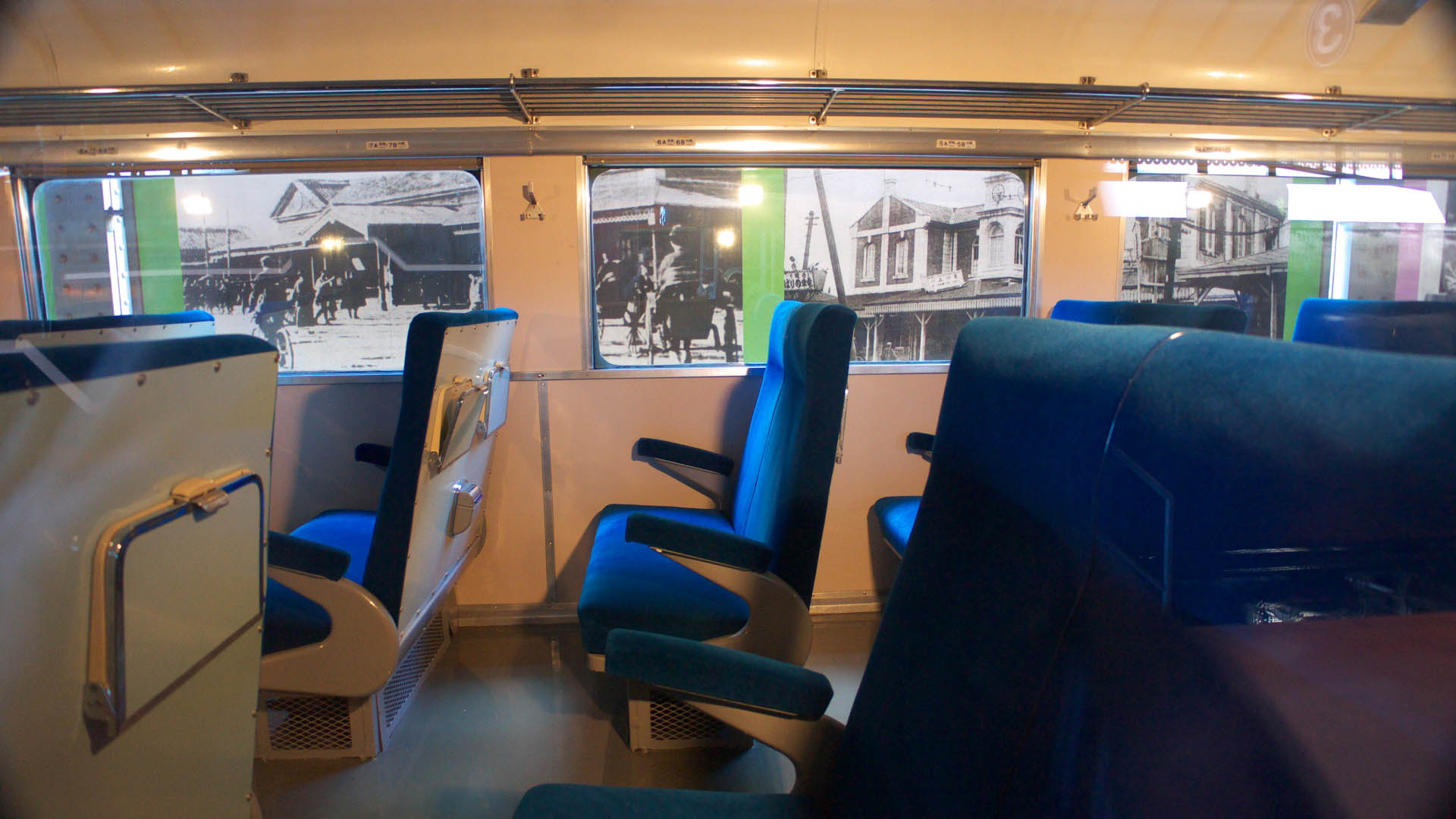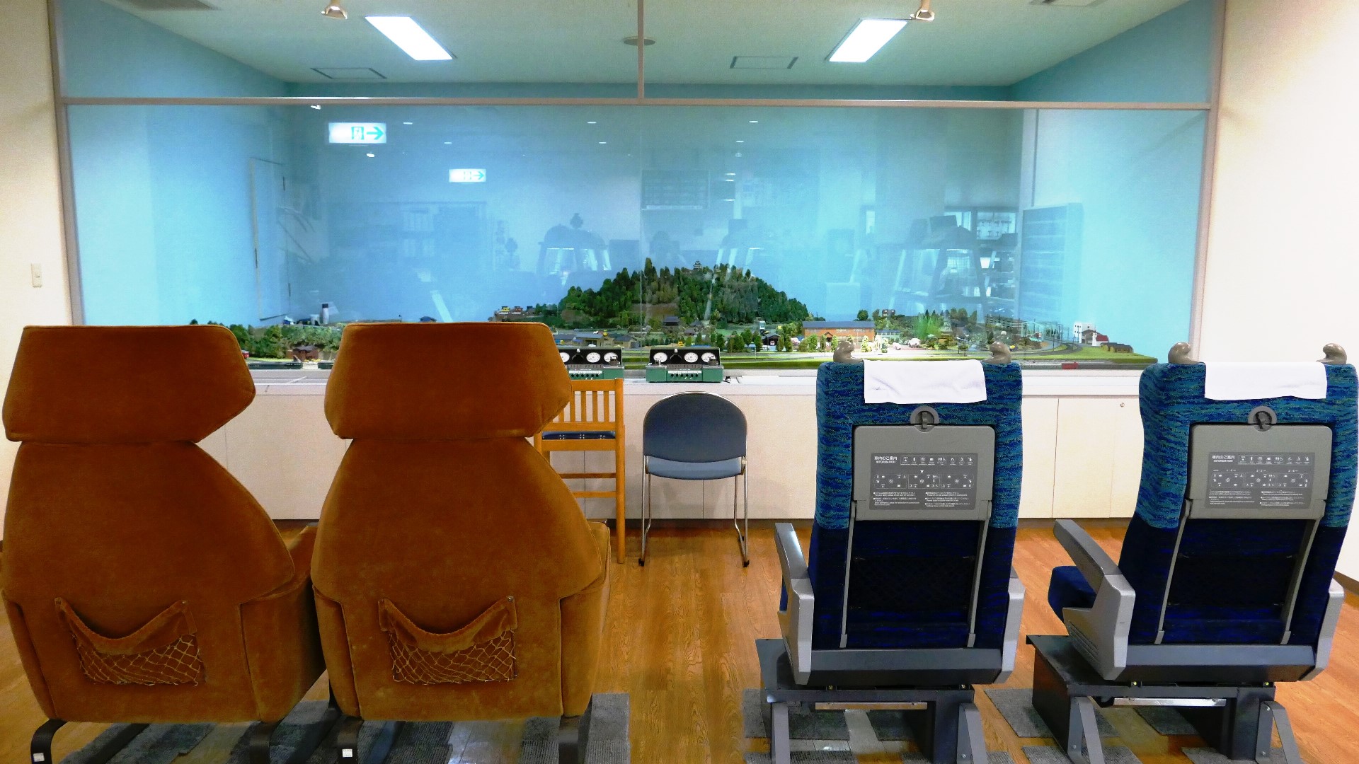 電動式行先系統板操作器やジオラマを見る特急用座席など。 | |||||
