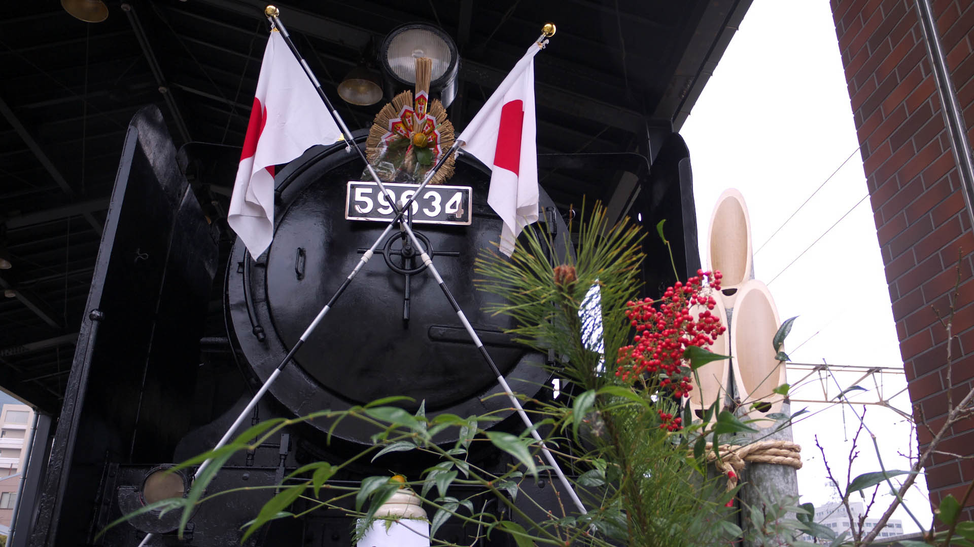 | 恒例の元旦風景:蒸気機関車たちの顔出し マイテ49-2も展示 | |||||||