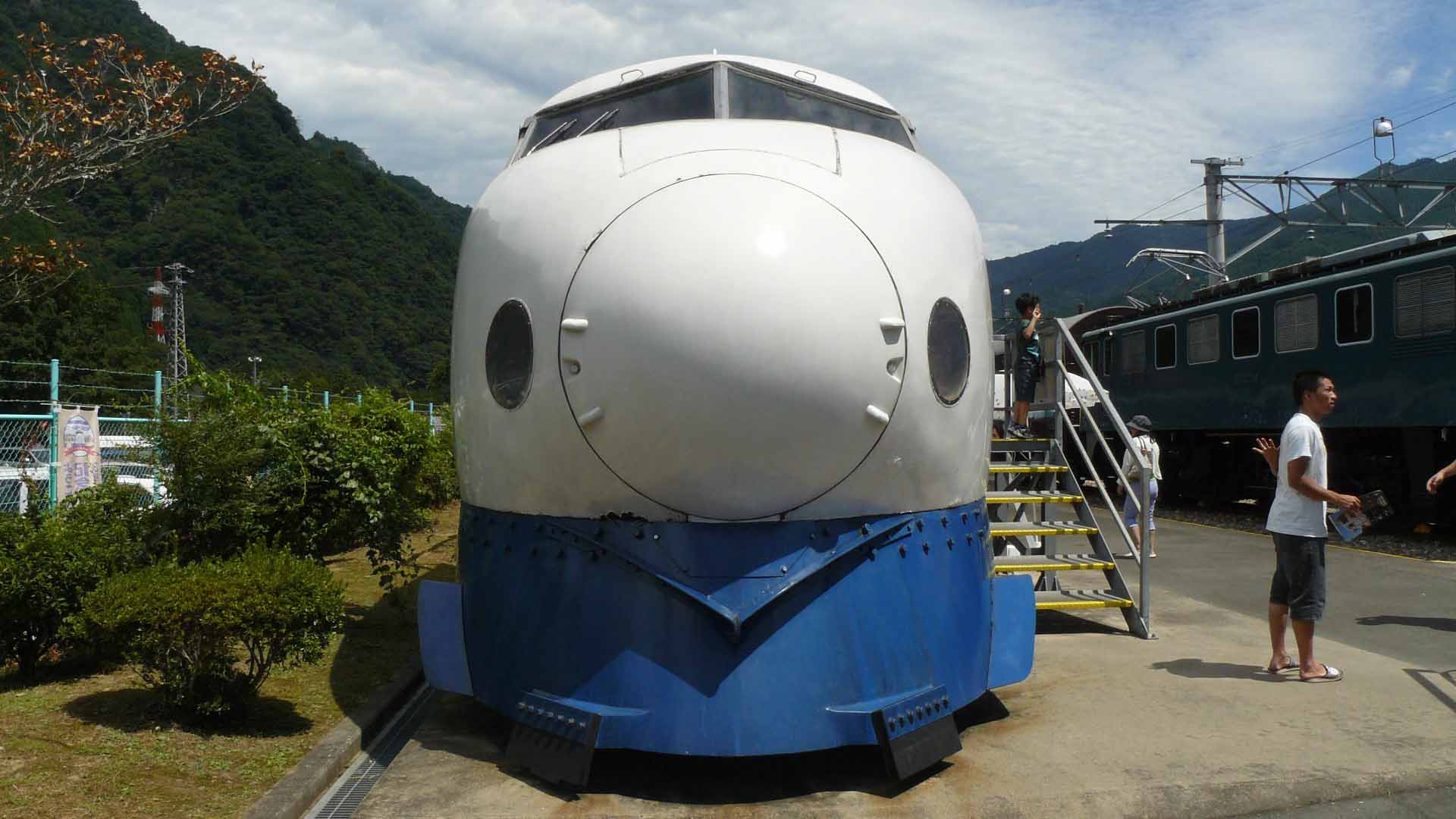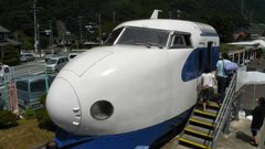 0系正面 | 0系運転室 | 0系の頭だけ切断して展示してある。 ある意味、無残な姿。 |