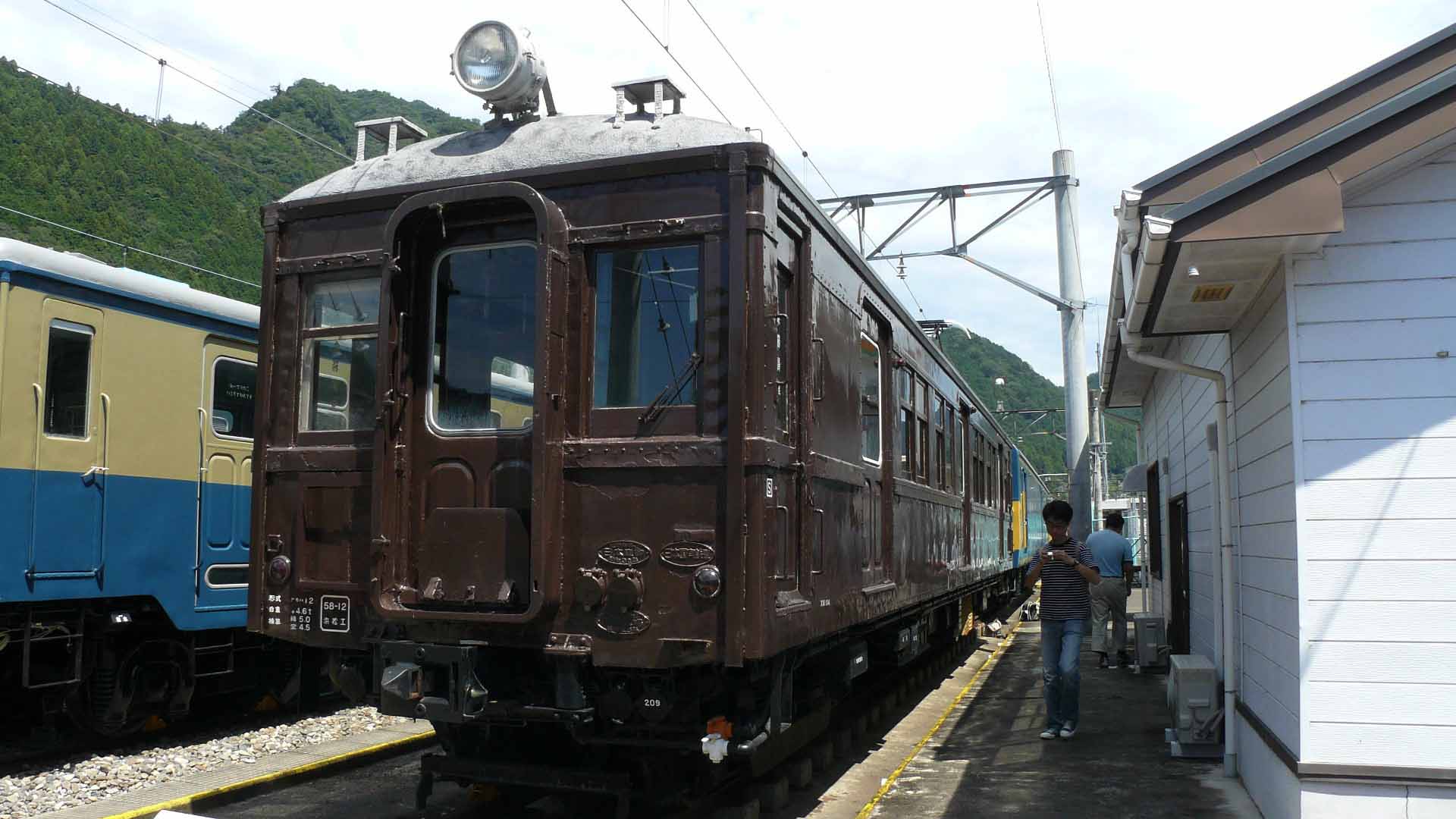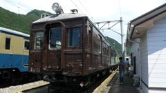 | 懐かしい600V線区の電車たち 右から、モ512・モ601・モ870 |