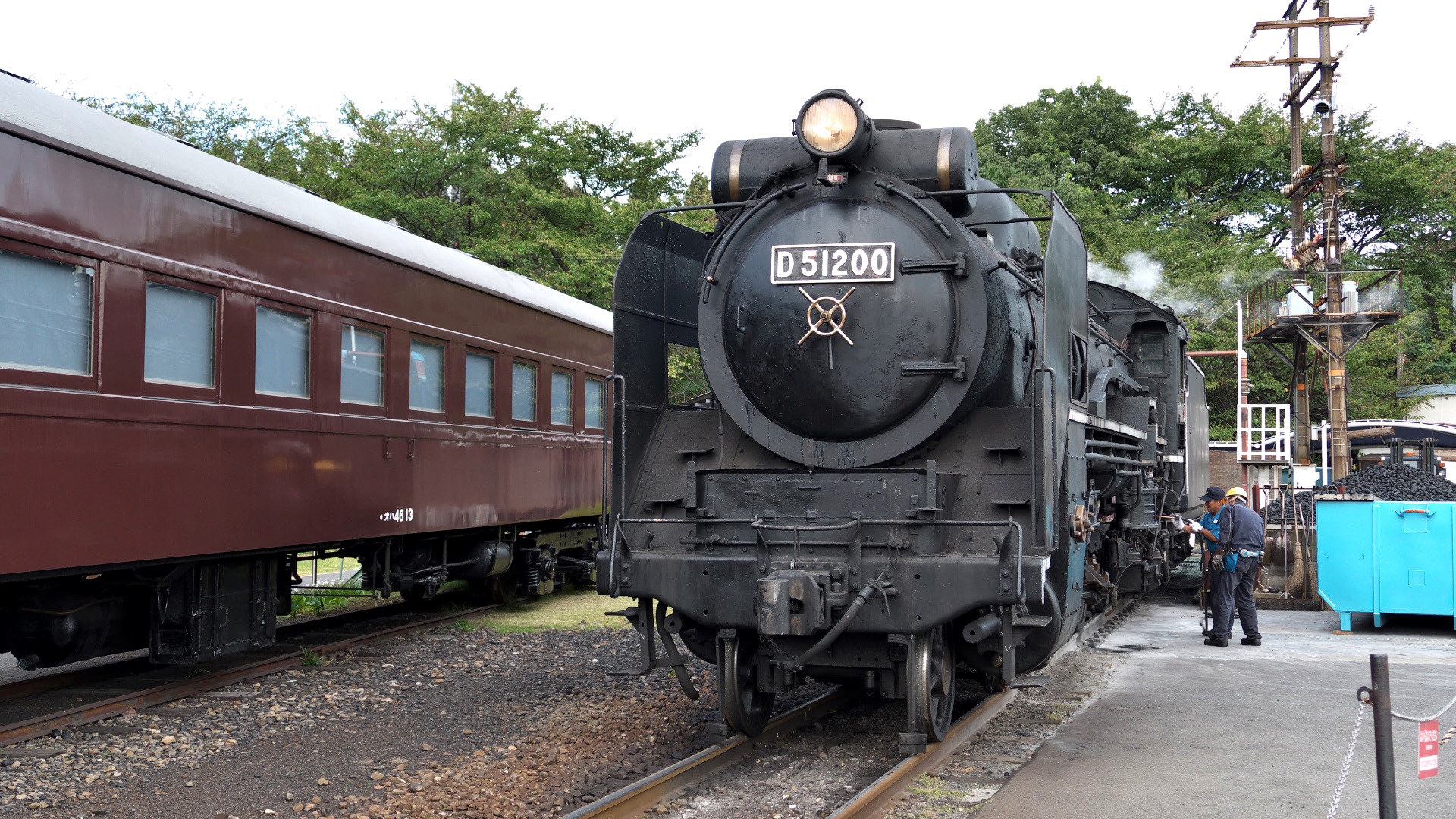 8620形8630号機の石炭や水補給のための転車台実演。 | 蒸気機関車は、その黒光りが美しい。 | |||||