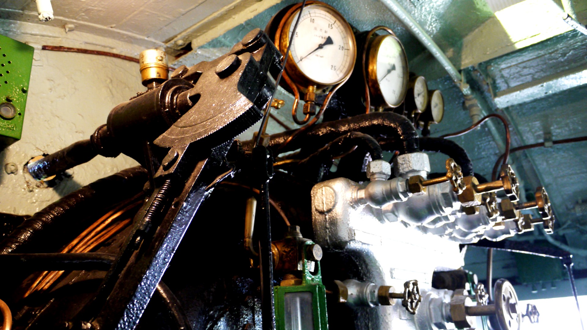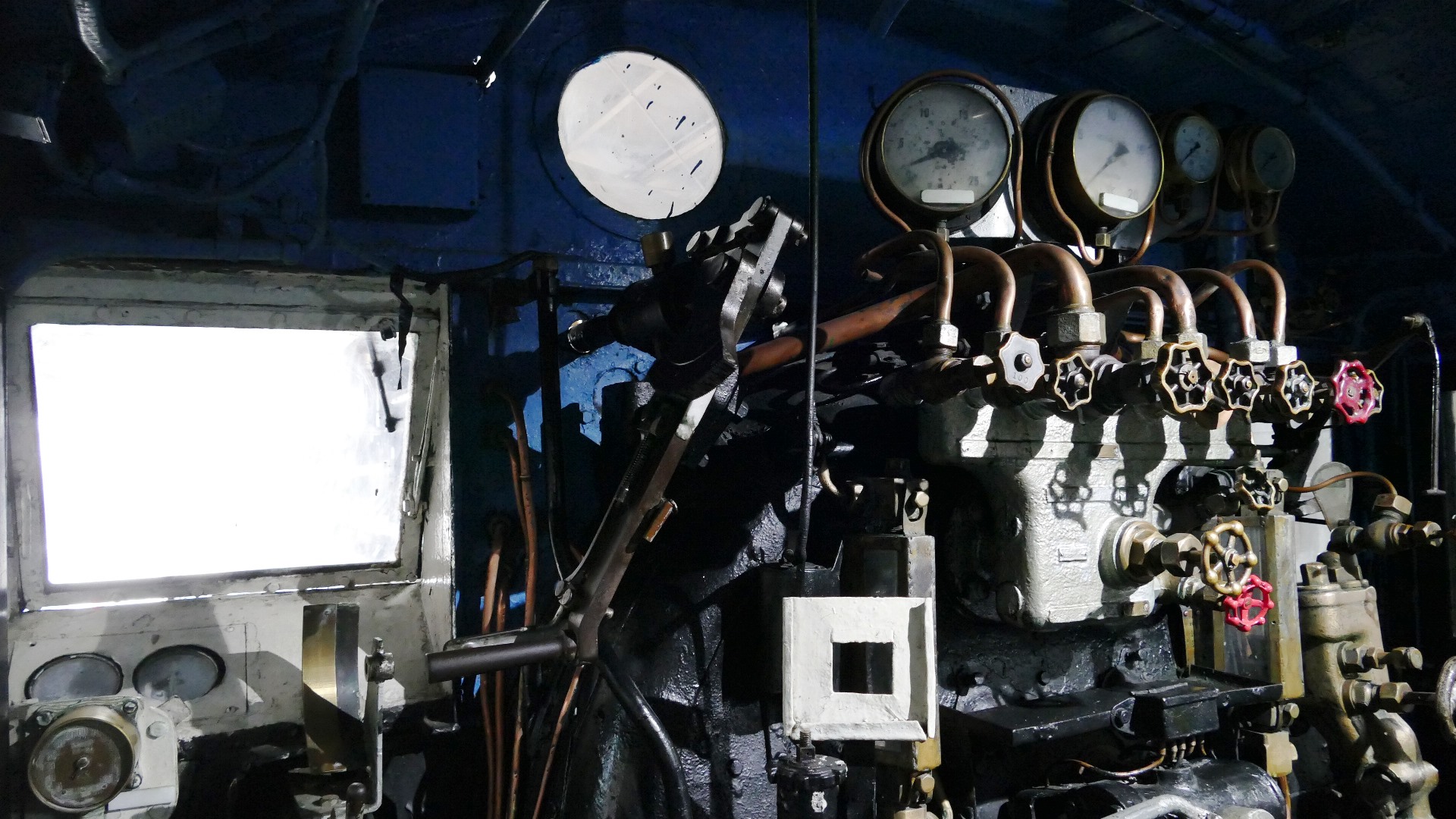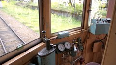 C62 26 機関室 | D51 2 後ろは、ナシ20形食堂車で土日営業。平日は駅弁が売られ車内で食べれる。 |