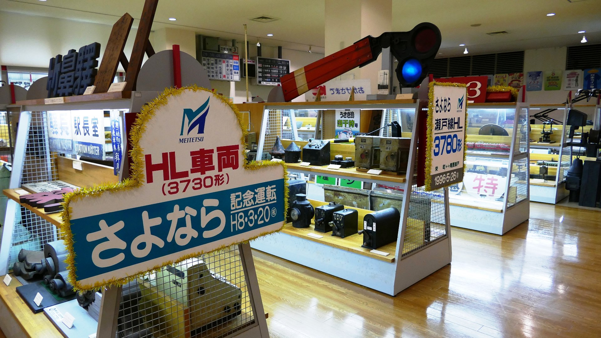 | 行先表示板パタパタやその他貴重な物品 | 貴重な物品が店舗の如く陳列されている。 | 歴史的資料、7000系速度計、閲覧コーナーではミュージックホーンが鳴らせるらしい。名鉄資料館敷地内には研修所もあり踏切やポイントなどの設備もあり。 | |||||