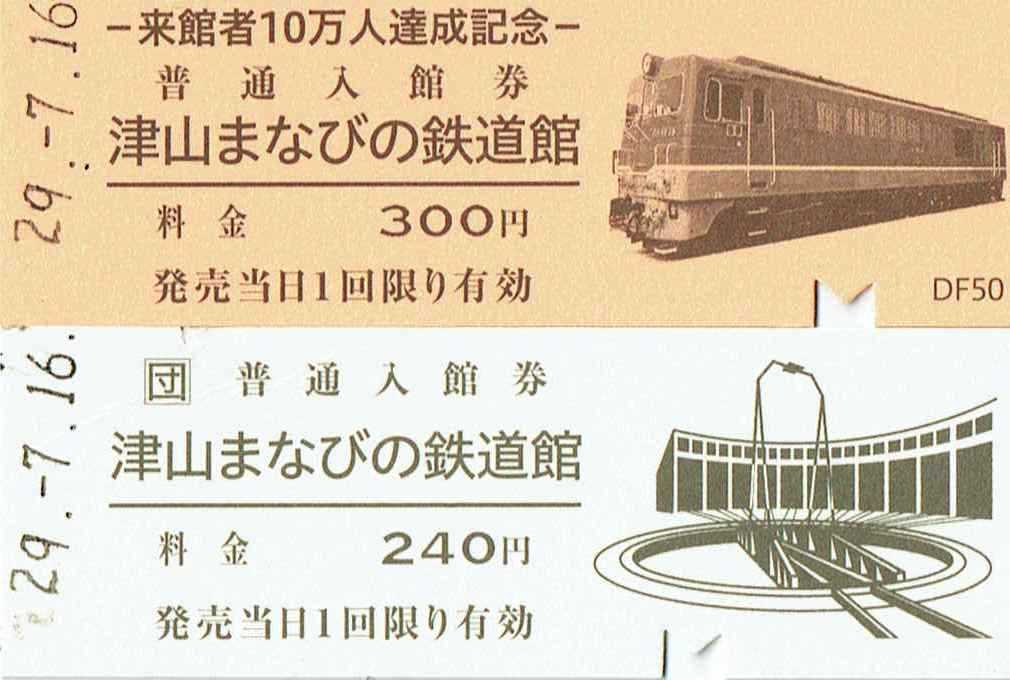 | 津山まなびの鉄道館 2017.7.16 平成28(2016)年4月2日に津山駅構内に開館し、2017年6月25日に来館10万人達成し、記念イベントも催された。 |