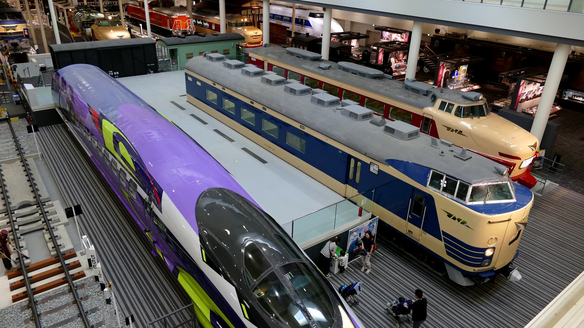 | 500系 TYPE EVA-02 ラッピングも登場 | キハ181系と懐かしい昭和の雰囲気 | 屋外の風景。 ドクターイエローの遊具もある。 |