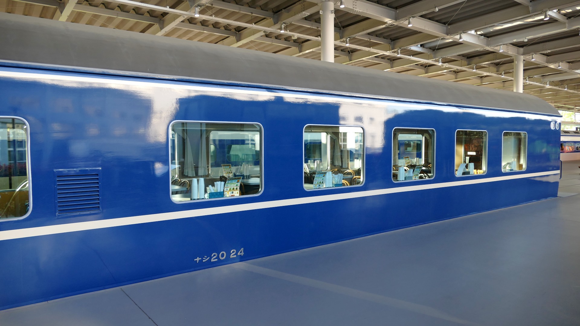 | 2020年に再訪問。まずはSLがお迎え | 24系客車が新たにラインナップ。案内板 581系が正面から拝めるようになった。 | ||||||