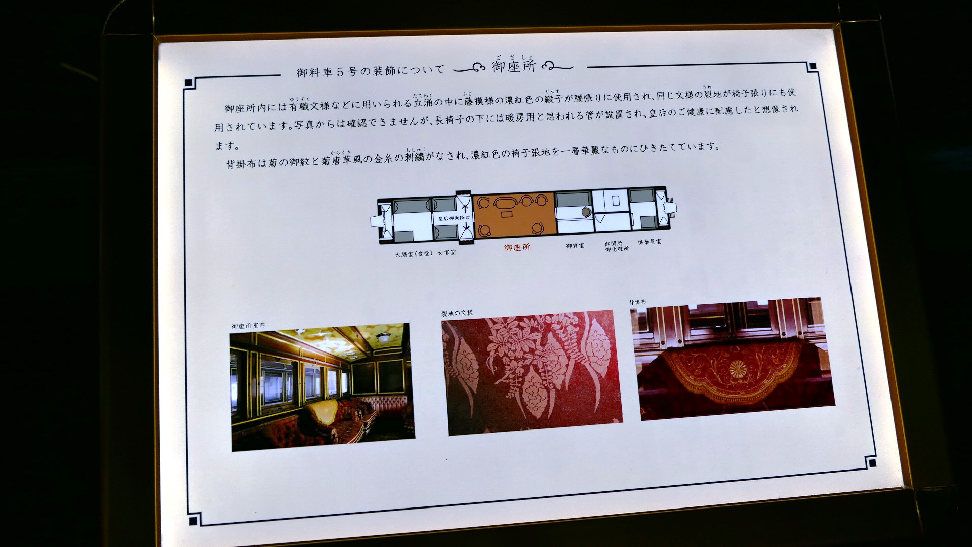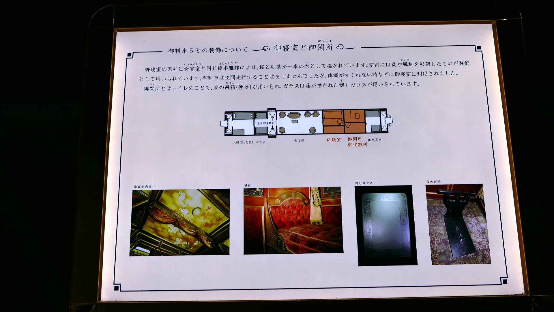 | 鉄道省新橋工場(国登録有形文化財)(案内板)内 明治天皇御料車(6号御料車)(案内1・案内2)と昭憲皇太后御料車(5号御料車)(案内1・案内2)はともに「鉄道記念物」 | |||||||