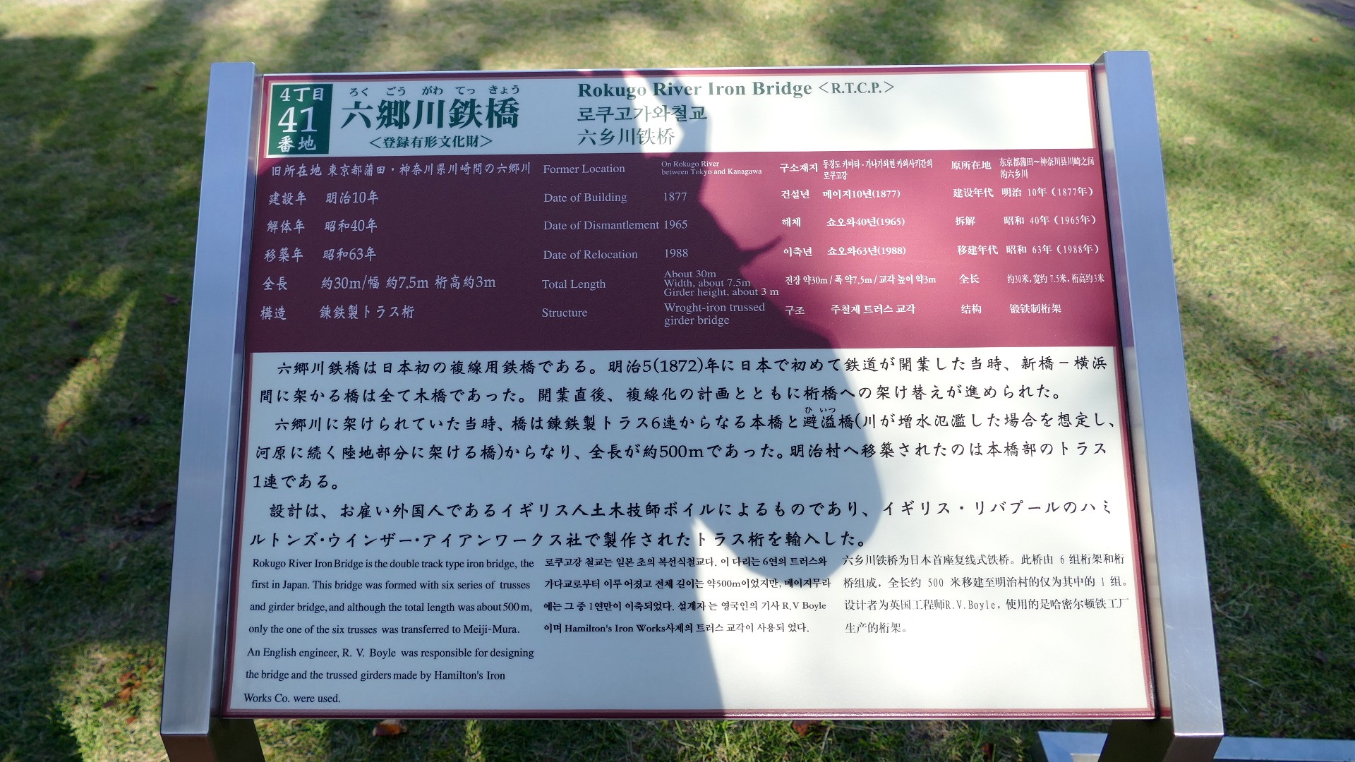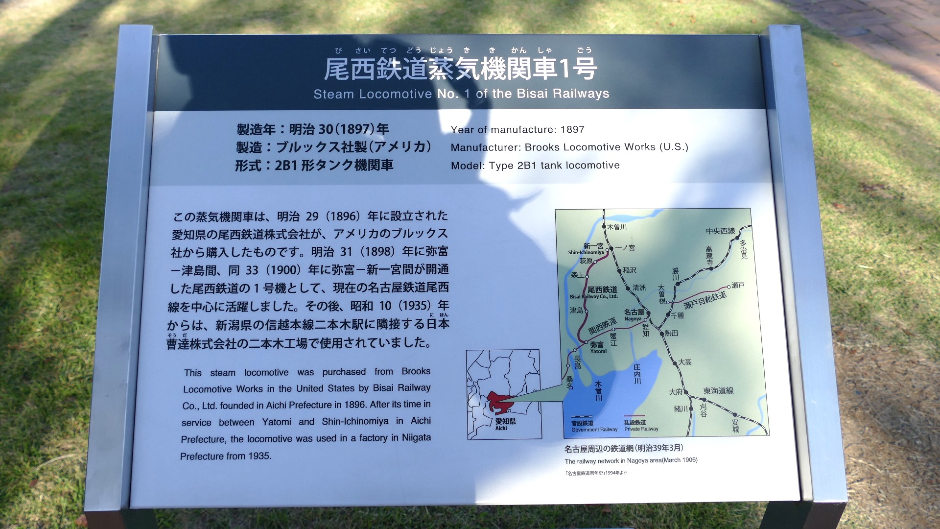 六郷川鉄橋(国登録有形文化財)(説明板)と尾西鉄道(名古屋鉄道)1号蒸気機関車(説明板) | ||||||
