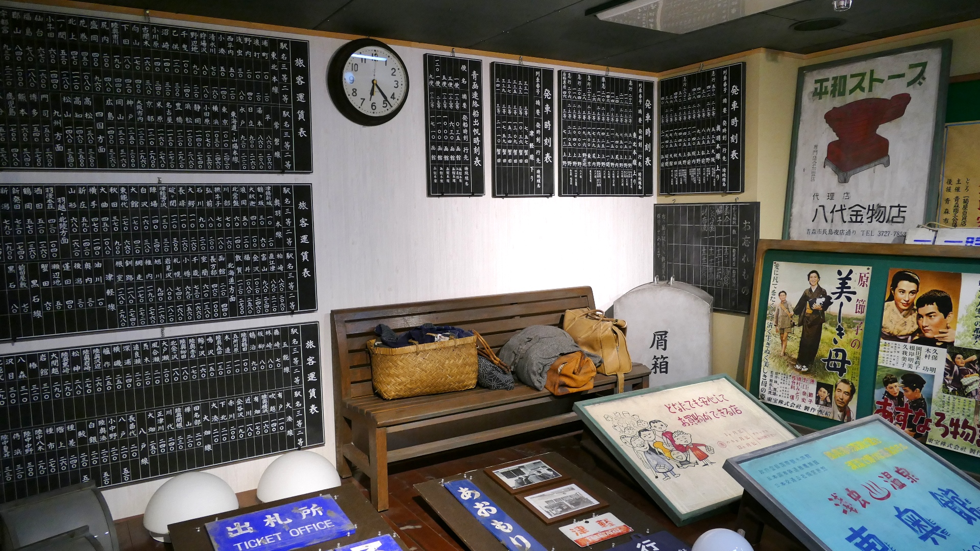 昭和初期の一般的な駅を再現。 ホームには1881年英から輸入した1800形蒸気機関車 |