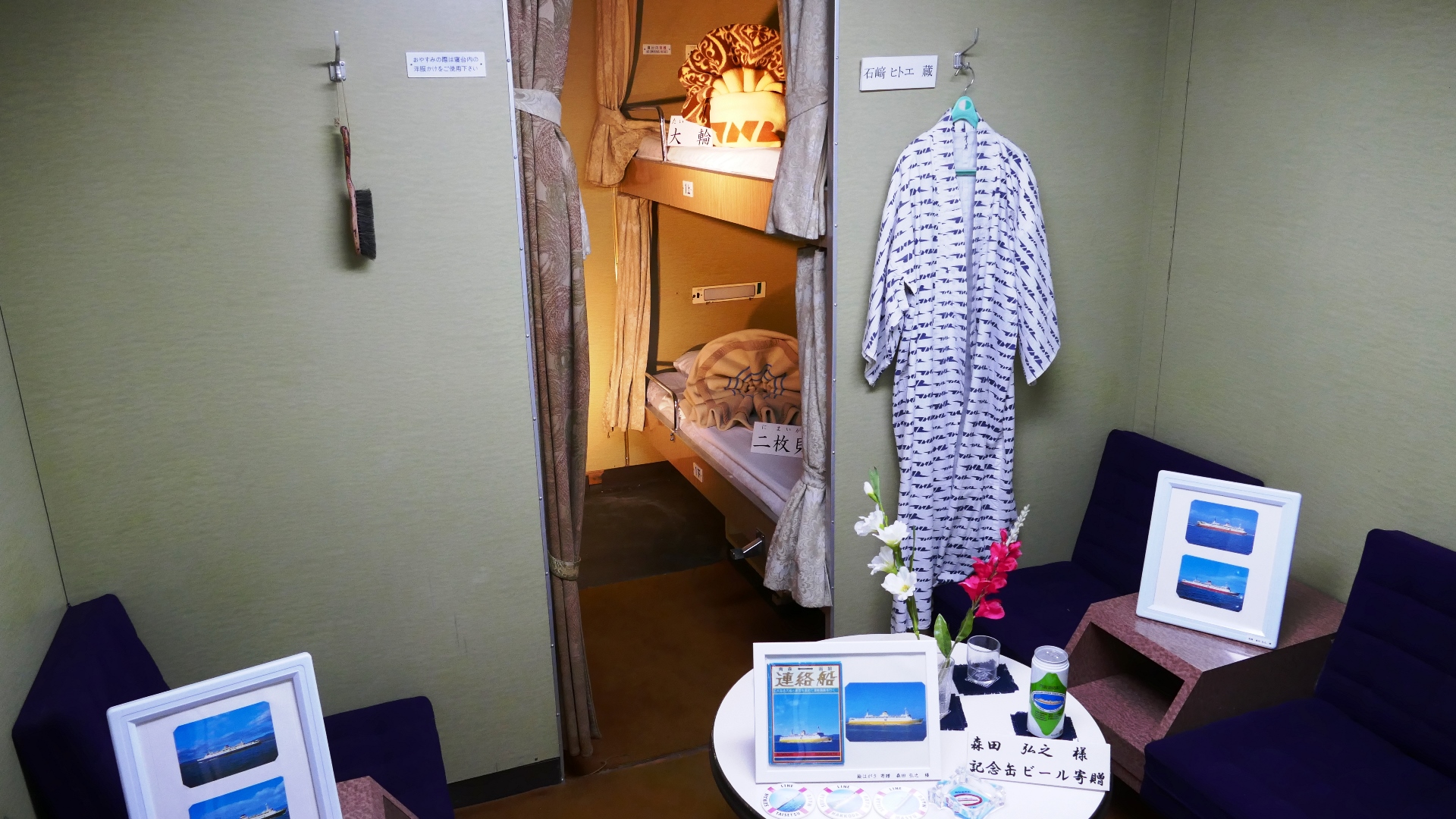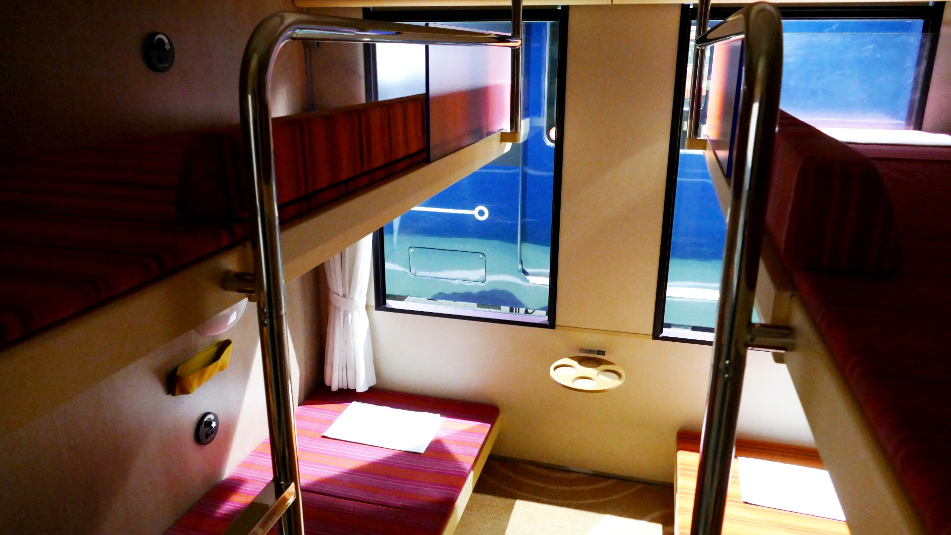 | 全長132m 全幅17.9m 5383トン | 船内の様子 グリーン席や寝台室 |